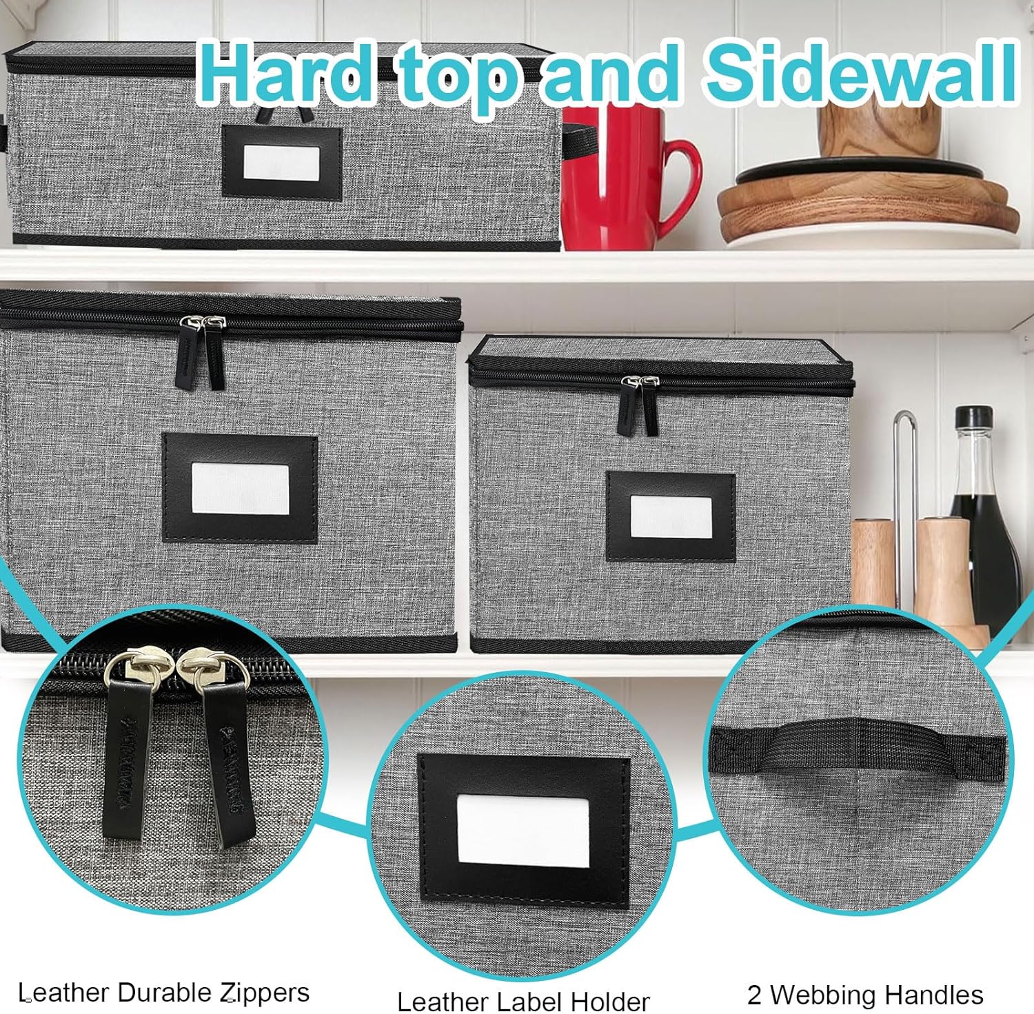5 PACK China Storage Containers-Quilted Mug Storage and Moving Boxes for Dishes,Dish Packing Supplies for Moving,Dinnerware &Accessories,Holds a total of 48 plates (4 sizes) and 12 cups(Grey)