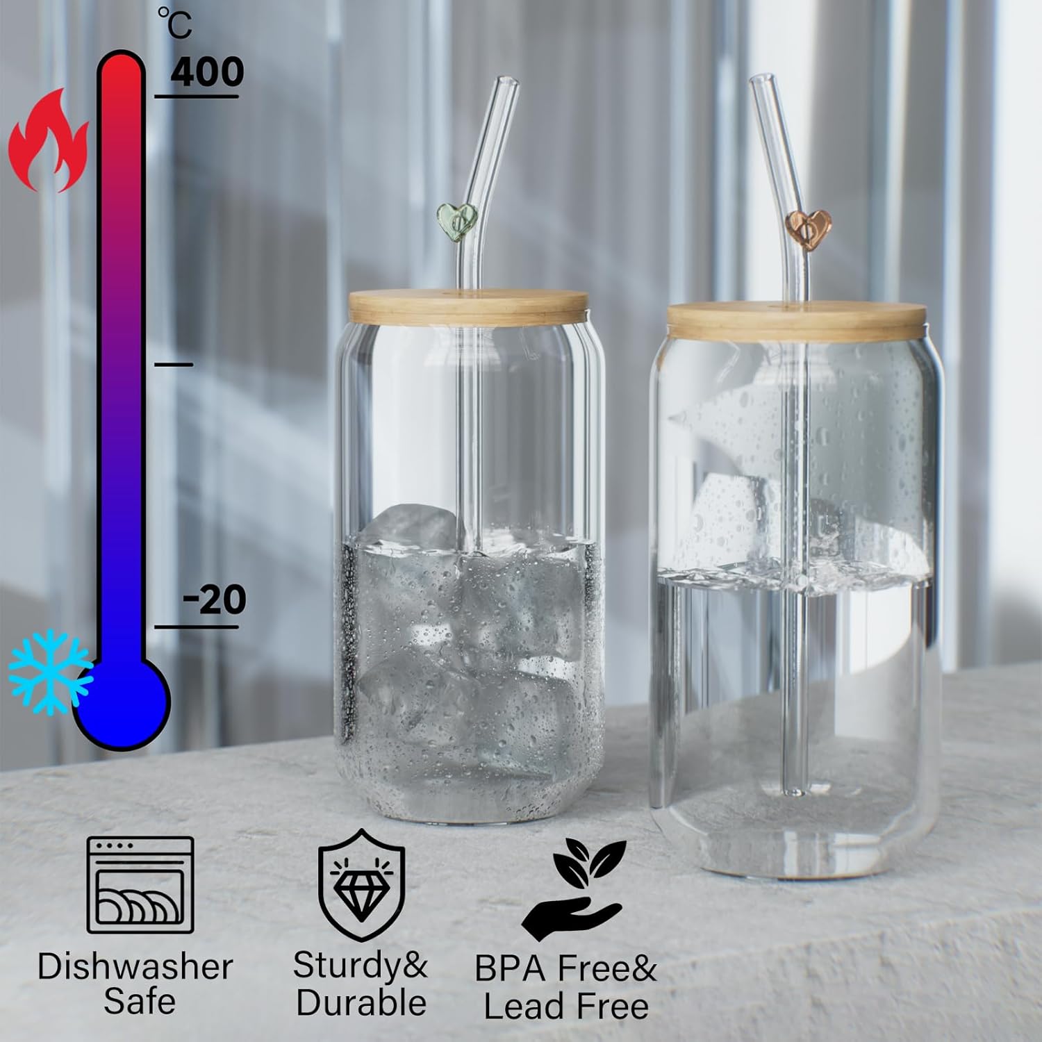 - Every straw is unique because our clear glass straws with glass heart-shaped decor, are individually handcrafted from top-notch high borosilicate glass. They're lead-free, totally non-toxic, and BPA-free. These straws for tumblers can handle any temperature, from a chilly -68°F to a scorching 753°F. Therefore, it work great for hot or ice drinking.