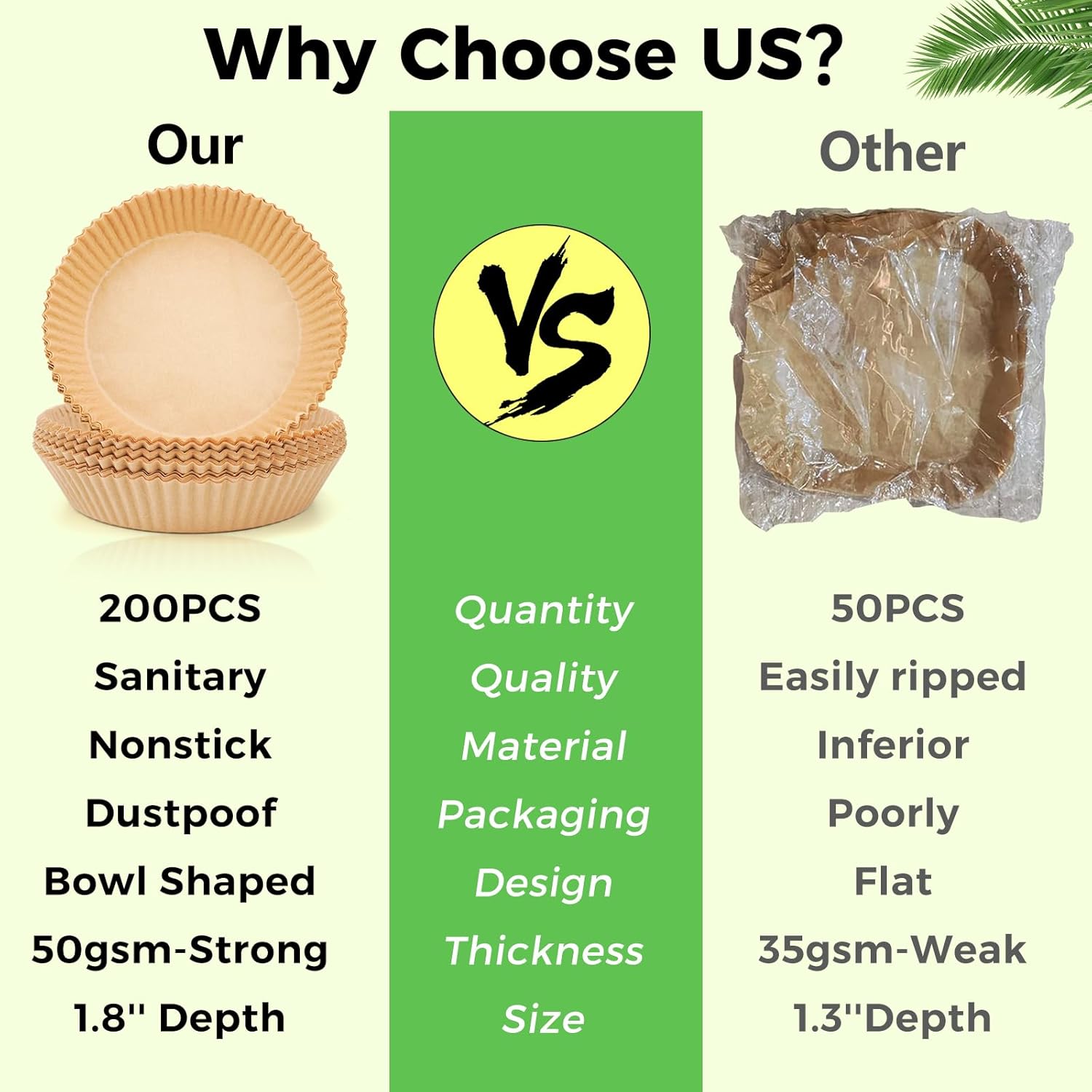 - Keep Your Air Fryer Clean: This 8-inch air fryer paper liner is suitable for 5-8 QT air fryers. These airfryer liners can effectively keep food residue away from fryer. Just simply rest the paper on the tray, saving time and effort