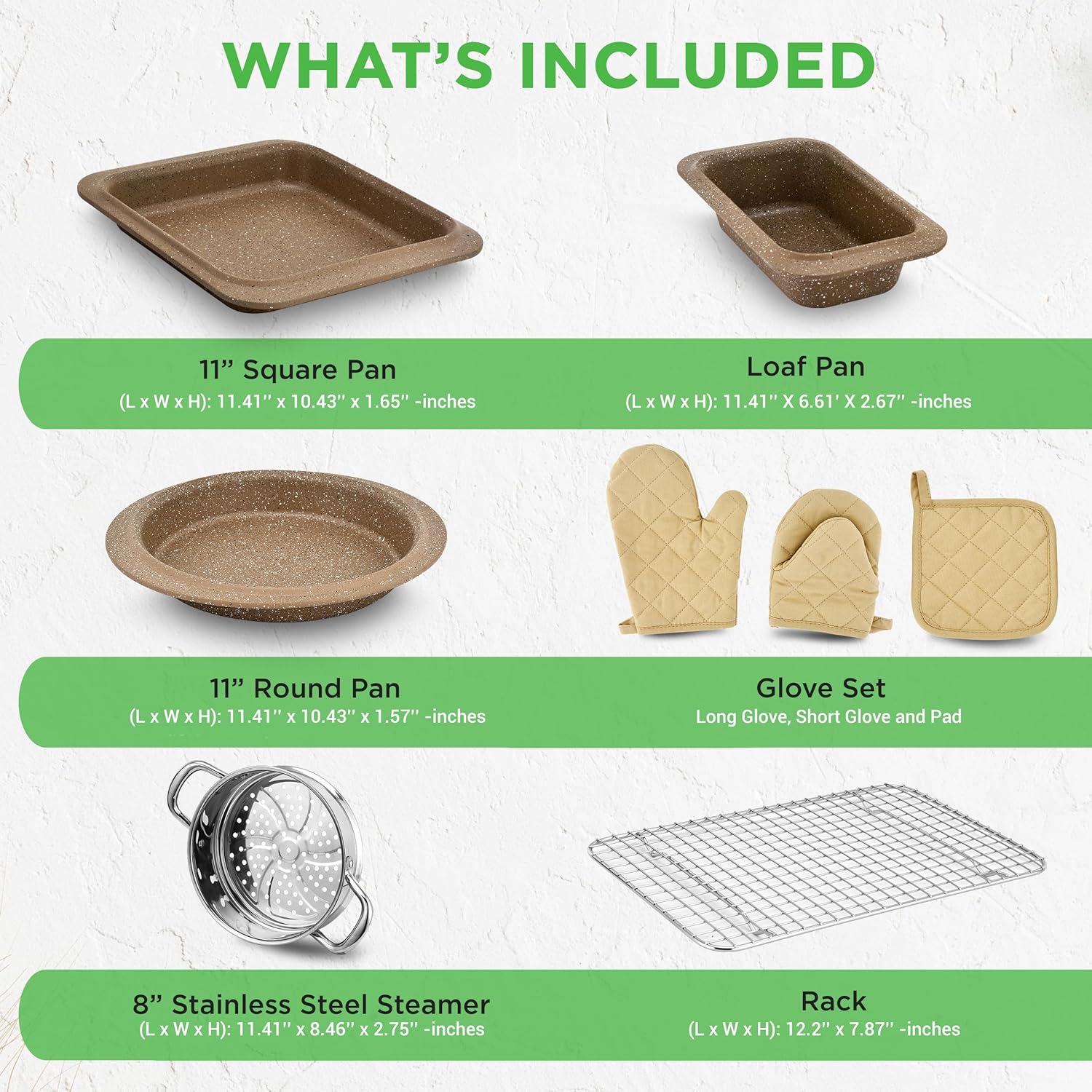 - MULTI-SIZED COOKING POTS - Master the art of versatile cooking with our bakeware set's multi-sized pots, with glass lids for precise temperature control. From small to large, these pan kits cater to all culinary needs, ensuring perfectly cooked meals.