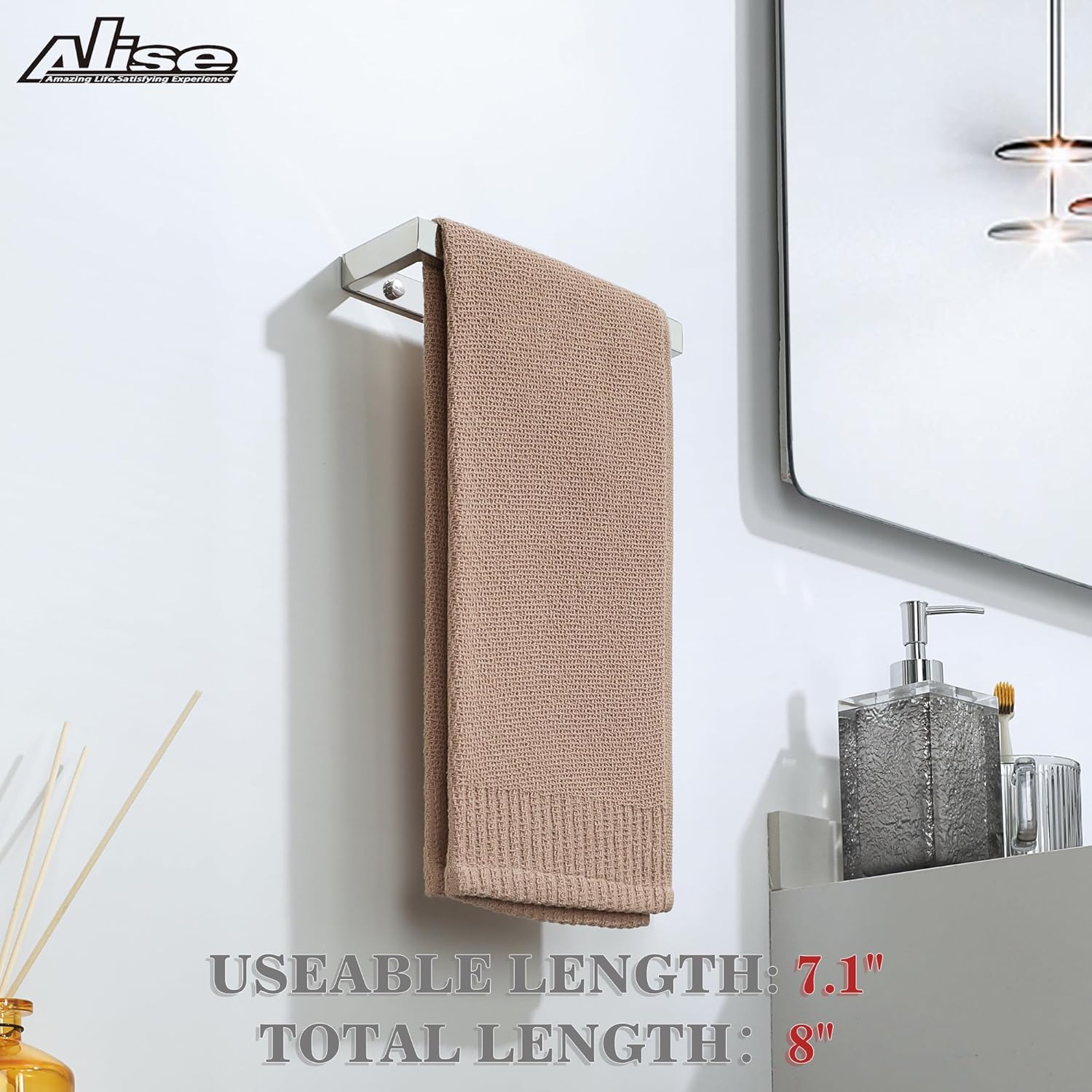 - 【4-Sided Integrated Design】8 "L x 2.56 "W x 0.8 "H Integrated design towel bar;The polished chrome finish towel bar can be installed horizontally or vertically according to the purpose;The polished chrome finish towel bar is simple, practical and stylish.l.eautiful.