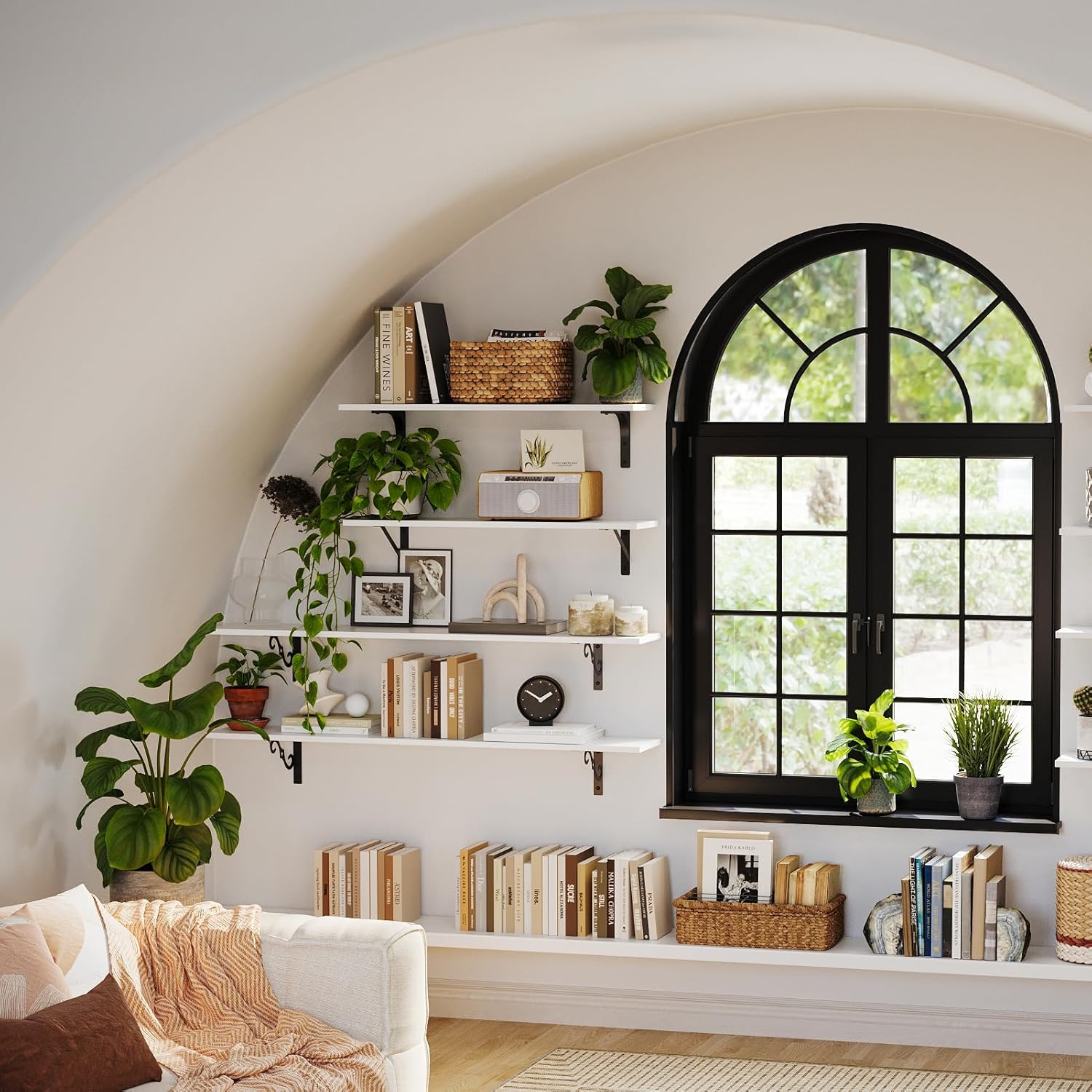 - ăAdd Finishing Touch to SpaceăMid-century design adds a retro-chic vibe to your home. Rusticity wood grain and exquisite S-shaped iron brackets flaunt visual interest and romance. They are full of character and enhance the texture of the space. A classy way to display your beloved decorations