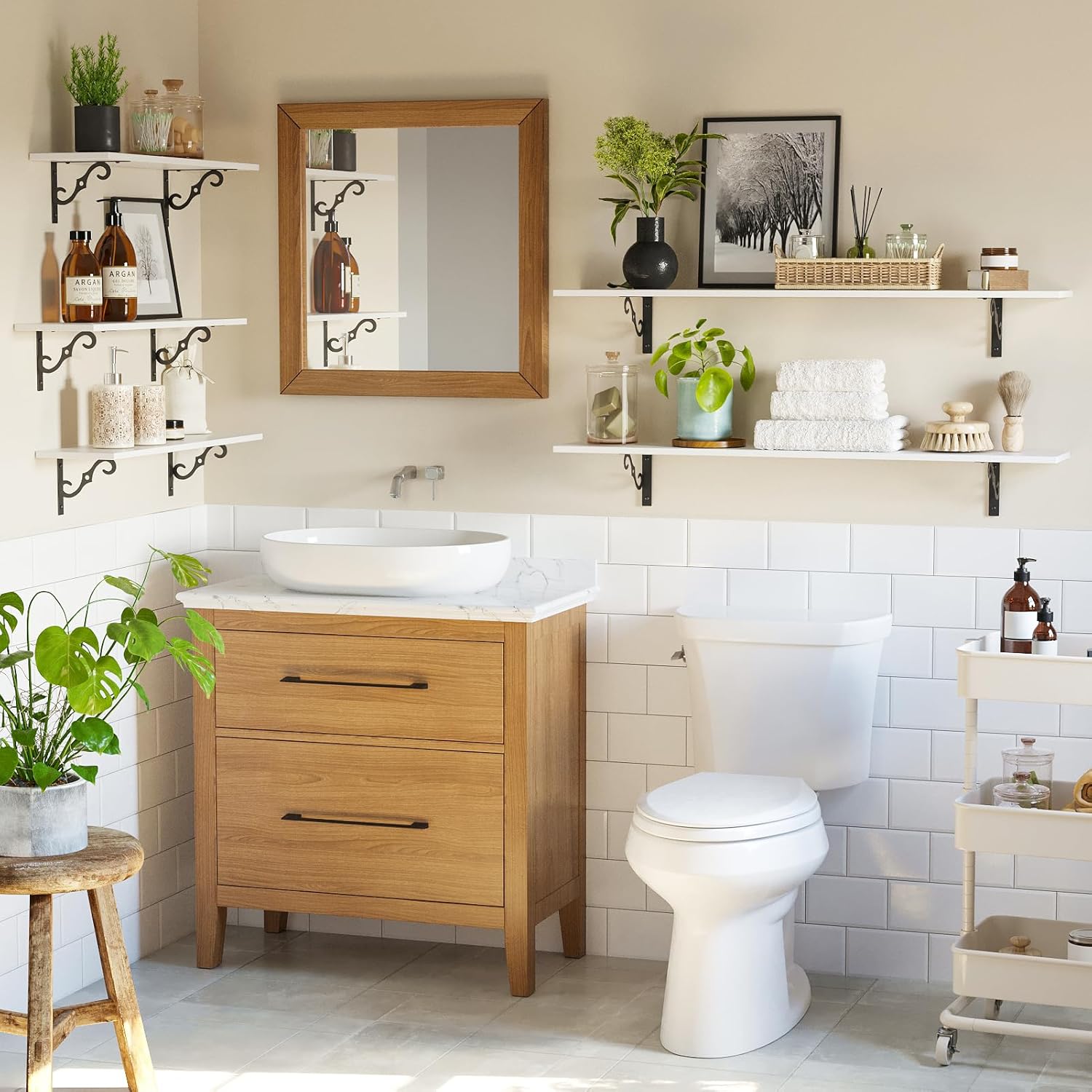 - ăWell MadeăMade of premium particleboard and expertly designed metal brackets, sturdy and durable. Thicker brackets bring added stability and stronger load-bearing capacity(up to 22lbs), supporting the wood shelves without sagging over time. All edges are well-finished for smoothness