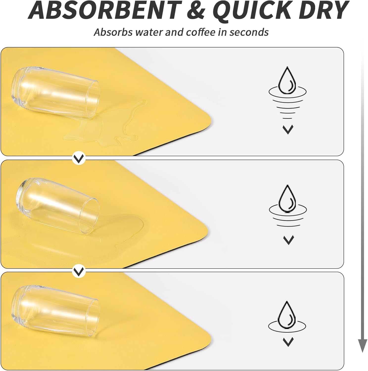 - ☕【Wide range of uses】 It is not just a coffee bar mat, but also a high water absorption and quick dry pad that can be widely used as a drying mat for kitchen countertop, cups, water dispensers, mixers, ice cream machines, dish washing racks, dinner plates, tableware, etc., or as a food pad for pets.