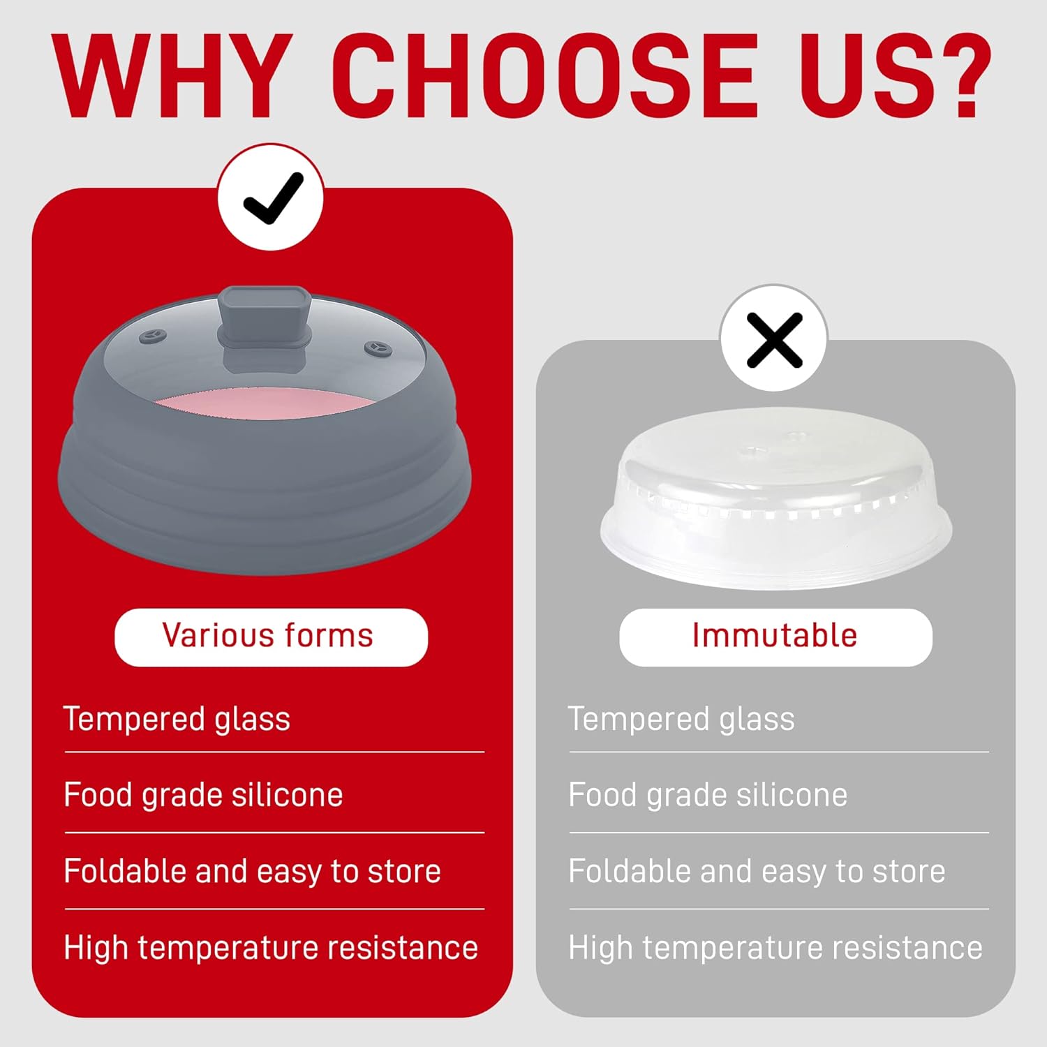 - π’ DURABLE AND CONVENIENT: Our microwave covers for food splatter is made of tempered glass and food-grade silicone. Each one sticks to the roof of the microwave when not in use so it's out of the way.