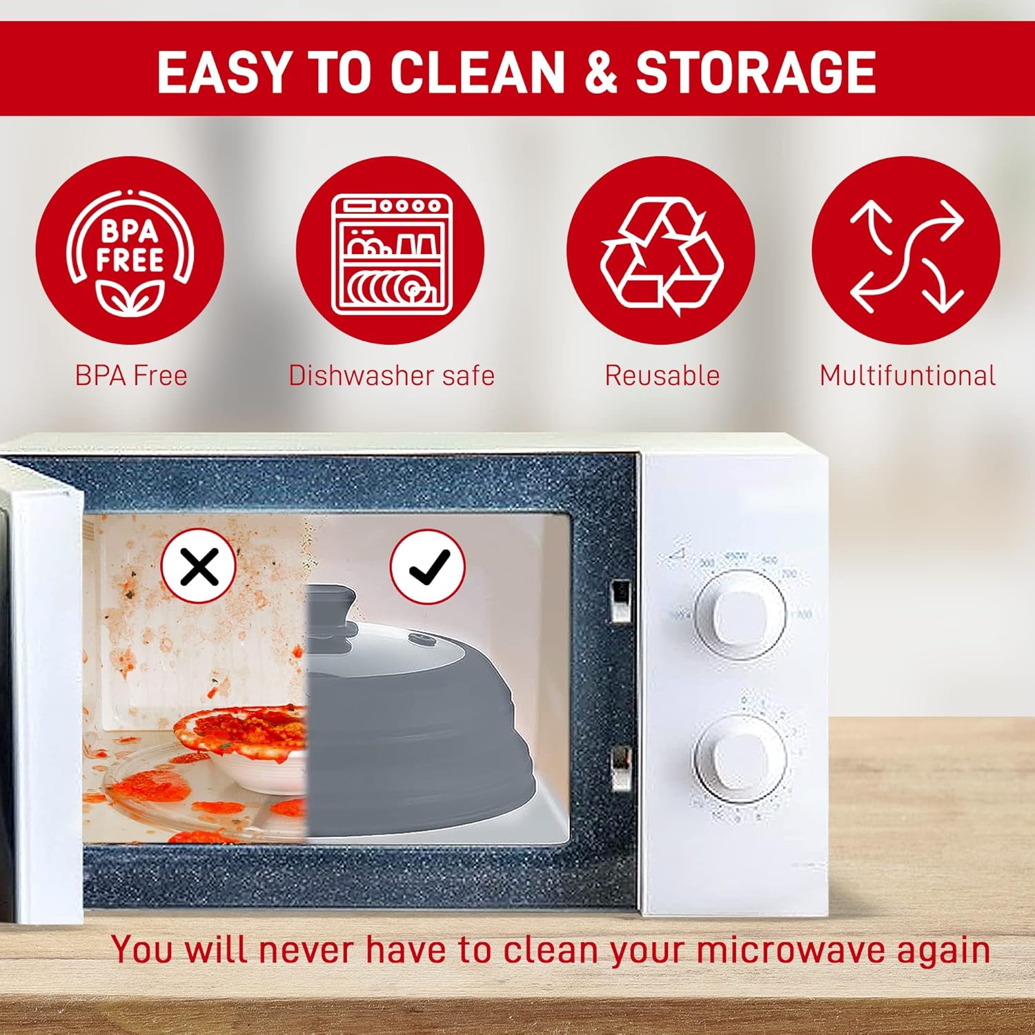 - π VERSATILE MICROWAVE PLATE COVER: This plate guard is collapsible to fit inside a microwave oven. Cover a plate or bowl of food while heating it to avoid splatters. Or, unfold the dome to cover a pot or pan.