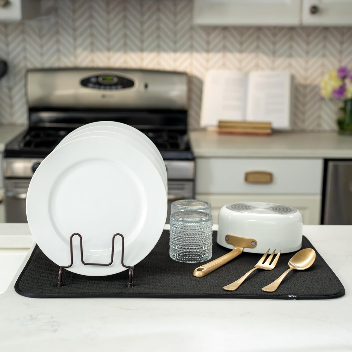 S&T INC. Dish Drying Mat XL, 18” x 24”, Absorbent Microfiber Kitchen Counter Mat, Dish Drying Pad for Dishes, Utensils, Pots and Pans, Extra Large, Black