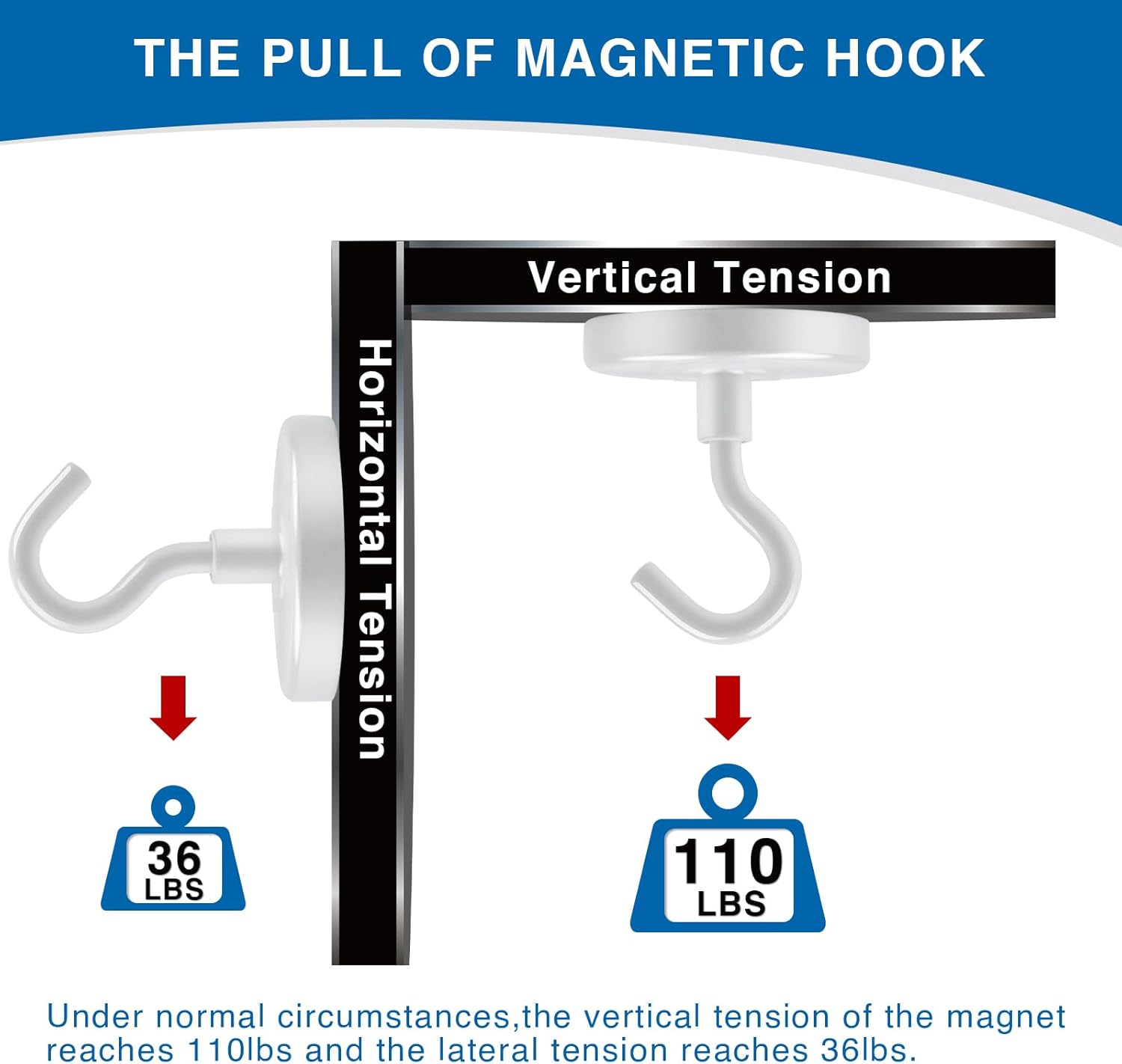 LOVIMAG Cruise Ship Essentials, 110Lbs Cruise Door Magnets, White Cruise Magnetic Hooks, Magnetic Hooks Heavy Duty for Hanging Celling, Grill, Refrigerator Kitchen-6 Pack