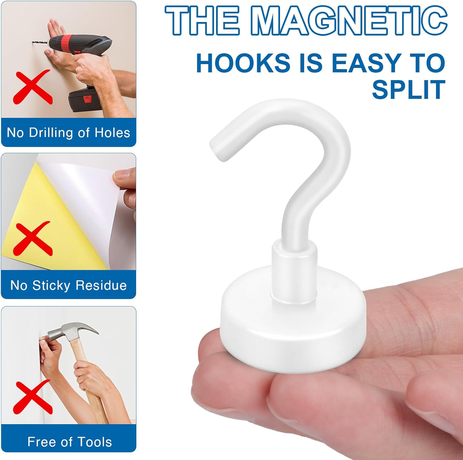 LOVIMAG Cruise Ship Essentials - 150Lbs Heavy Duty White Magnetic Hooks for Cruise Cabins - Strong Hanging Hooks - 12 Pack