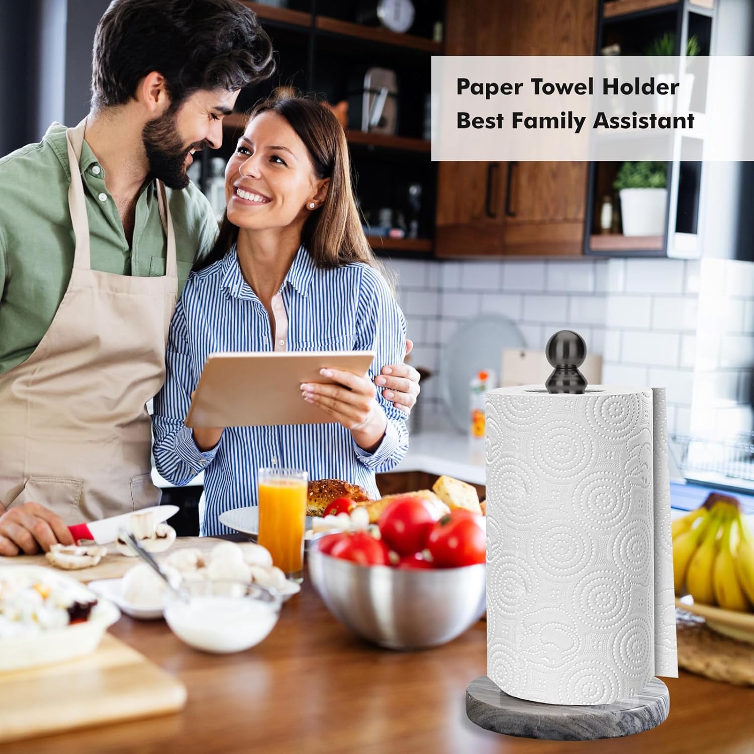 Black Paper Towel Holder Countertop with Heavy Marble Base, Standing Paper Towel Roll Holder for Kitchen Bathroom, with Weighted Base for One-Handed Operation