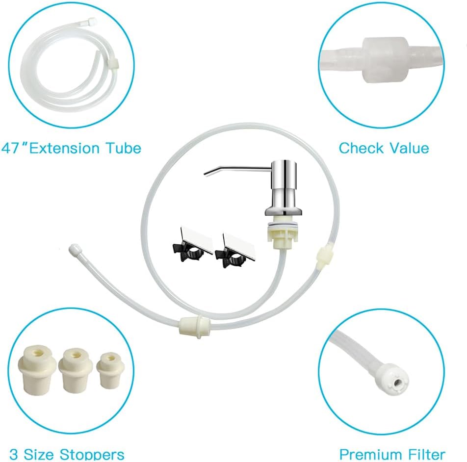 Dish Soap Dispenser for Kitchen Sink, Countertop Sink Soap Dispenser Water Pump with 47” No-Spill Extension Tube Kit Design for Kitchen Bathroom, No More Refills (Chrome)