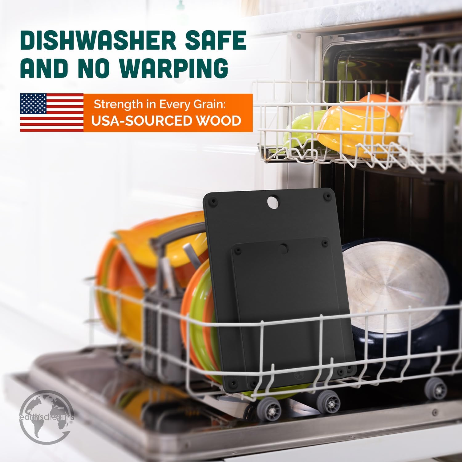 Earth’s Dreams Wood Cutting Board Set 3-Piece: Small, Large & Extra Large - Charcuterie Board, Non-Plastic, Non-Toxic, Heavy-Duty, Dishwasher Safe (Black)