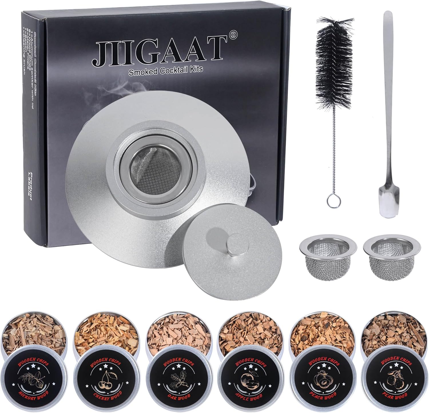 - Whiskey smoker kit injects a soft smoky flavor into your food and wine, elevating your cooking and drinking experience to new heights. njoy the rich and uplifting flavors created by our cocktail smoke set to the fullest.The aluminum material cocktail smoke gun kit is designed with exquisite luxury as its design element, as a present for your friends that is a perfect bar gifts, alcohol related gifts, mens birthday gift ideas, gifts for husband, valentine's dayifts for him.
