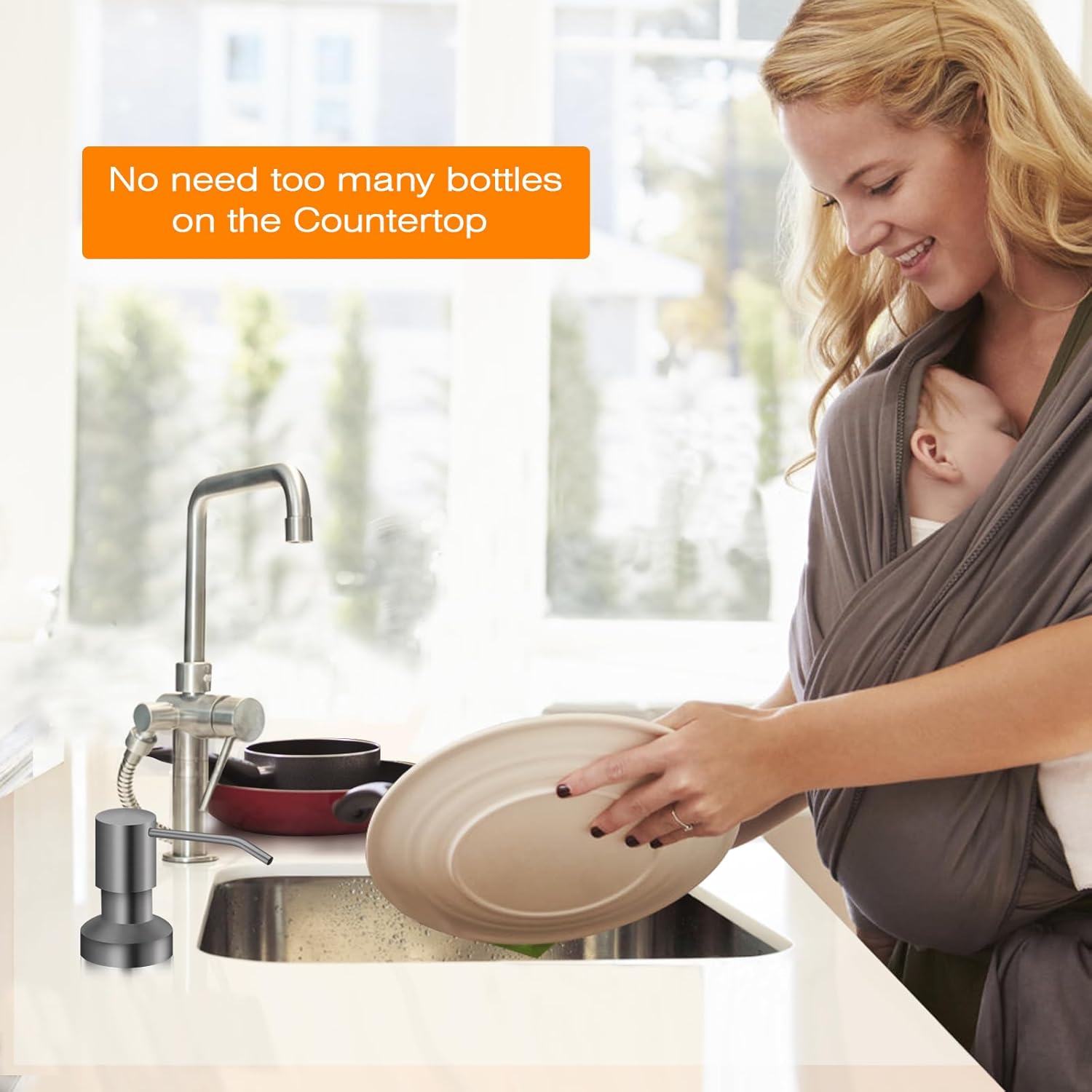 Sink Soap Dispenser for Kitchen Sink, Countertop Built in Sink Soap Dispenser with 47” Extension Tube kit, No Need to Fill The Little Bottle Again (Gray)