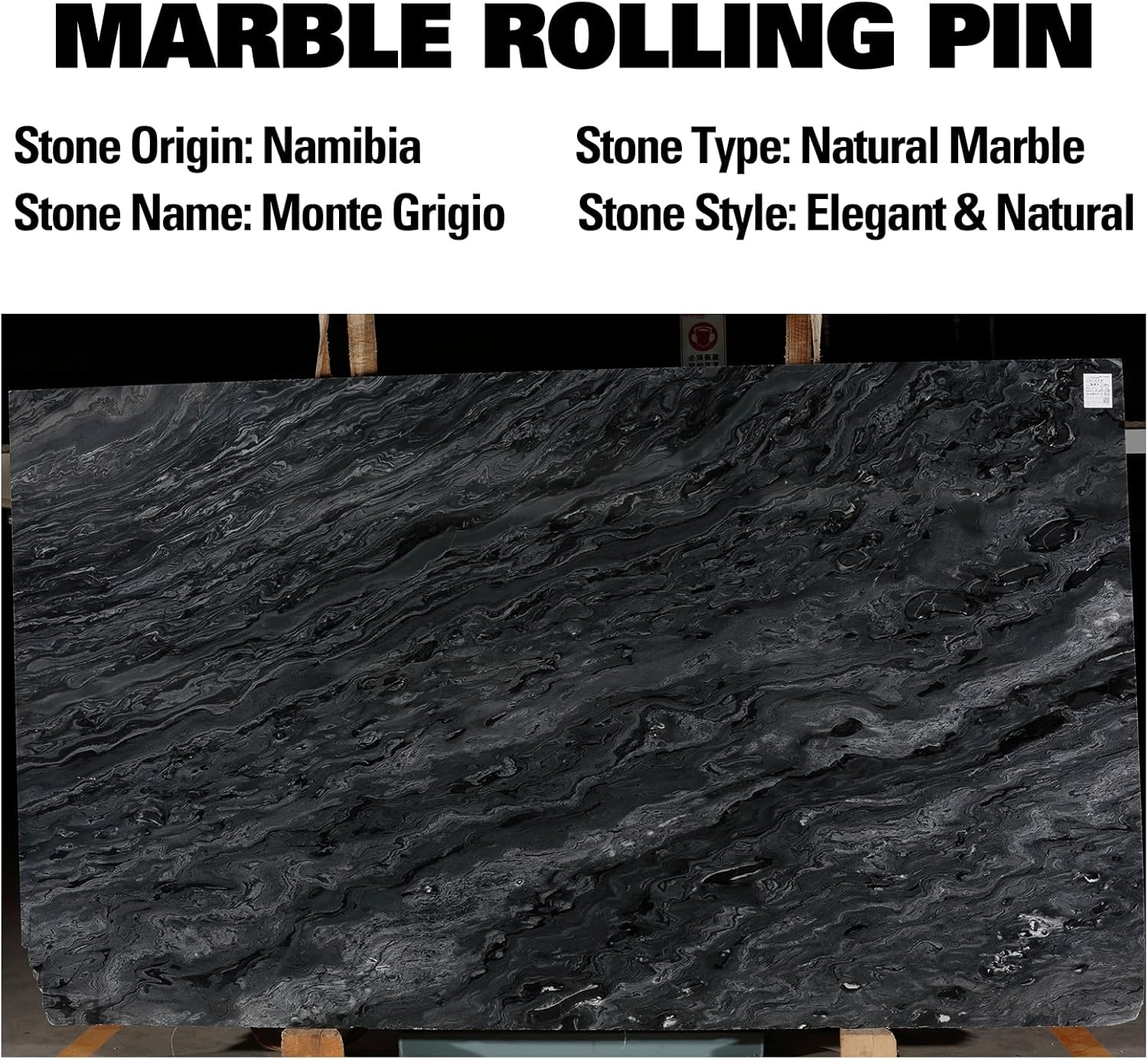 African Natural Marble Rolling Pin, Non-Stick Polished Dough Roller, Pasta, Dumpling, Fondant, Pie Crust, Bread, Pizza Dough, Kitchen Baking Pastry Tools with Mat/Scraper(Monte Grigio)