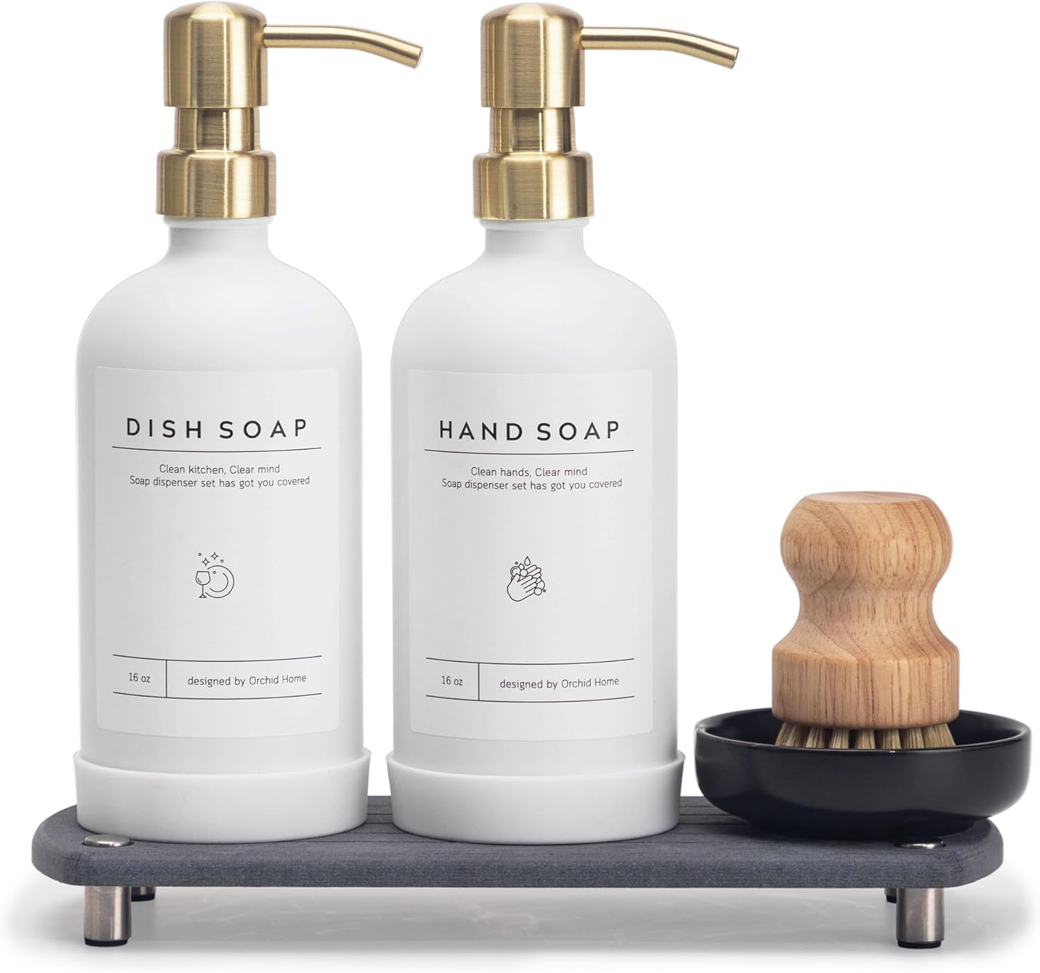 ![[Luxury] Kitchen Soap Dispenser Set - 16OZ White Glass Bottle, Stainless Steel Pump, Instant Dry Tray, Waterproof Labels, Non-Slip Silicone Pad, and Dish Brush | Upgrade for Your Kitchen and Bathroom](http://cam-pnest.com/cdn/shop/files/616Tlg57gDL._AC.jpg?v=1762242086&width=1445)