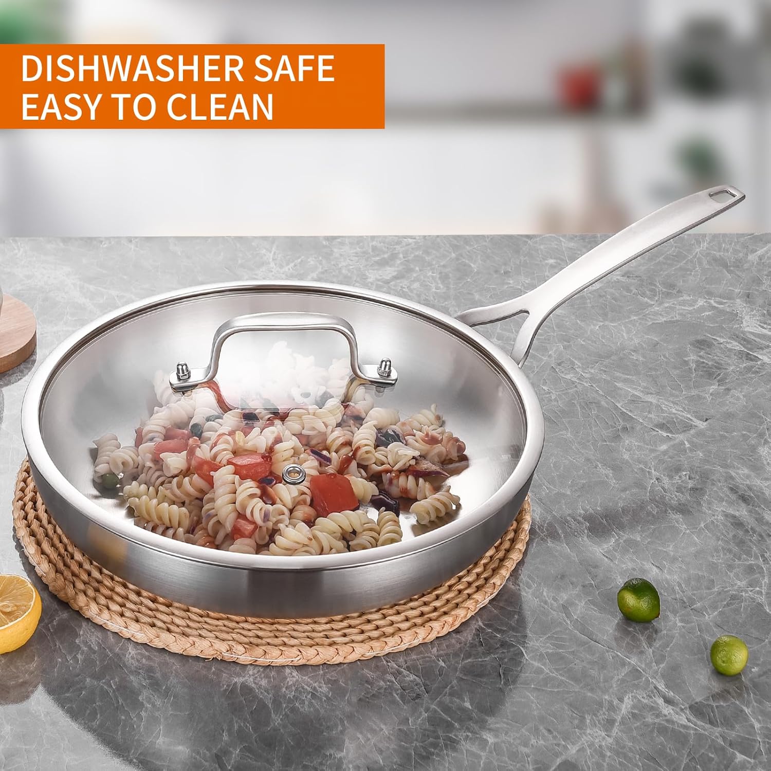 DELARLO Tri-ply Stainless Steel Frying Pan Set with Lid 8" 12" large Skillets Induction Chef's Pan,Pots and Pans Set Kitchen Cookware Set Dishwasher and Oven Safe