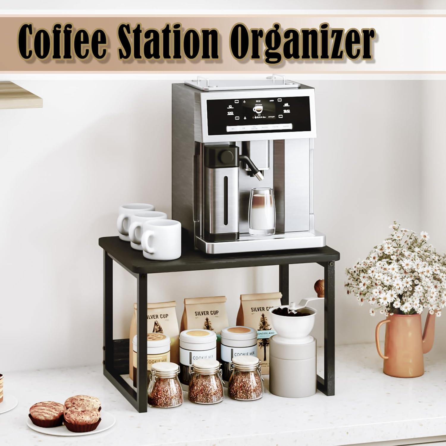 MARTY Kitchen Countertop Organizer Cabinet Shelf, 17x12.4 Large Spice Racks Counter Shelf Microwave Oven Rack Desktop Storage Organization for Kitchen, Office, Metal & Wood, Black