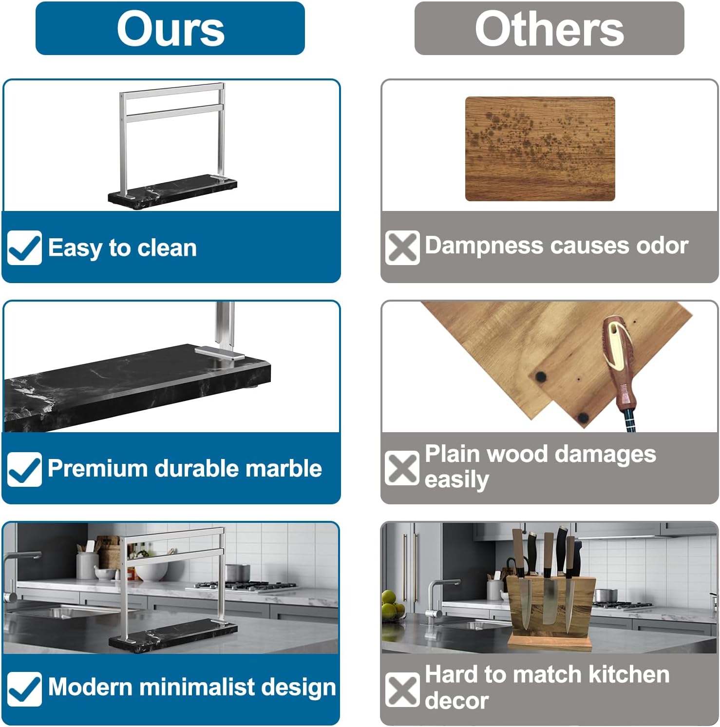 - 【Innovative Patented Design】Showcasing a fusion of high-grade 304 stainless steel and marble, this knife holder is not only aesthetically modern and elegant but also features a unique patented design. It brings a contemporary and stylish vibe to your kitchen, setting it apart from ordinary kitchen accessories