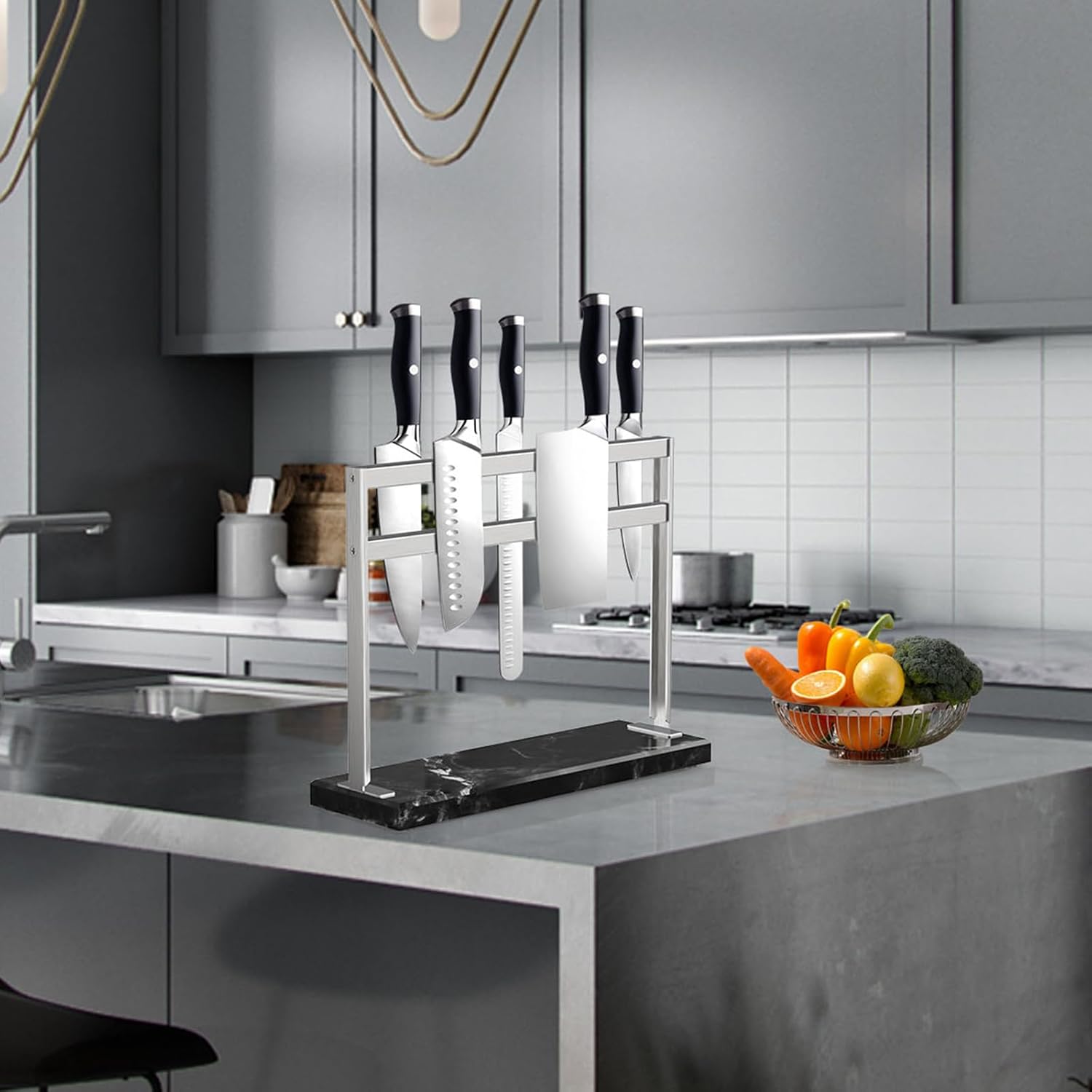 YIIYIIN Magnetic Knife Block with Marble Base - Double Sided Magnetic Knife Stand - Magnetic Knife Holder - Kitchen Knife Storage - Knife Holders for Counter Top - Black