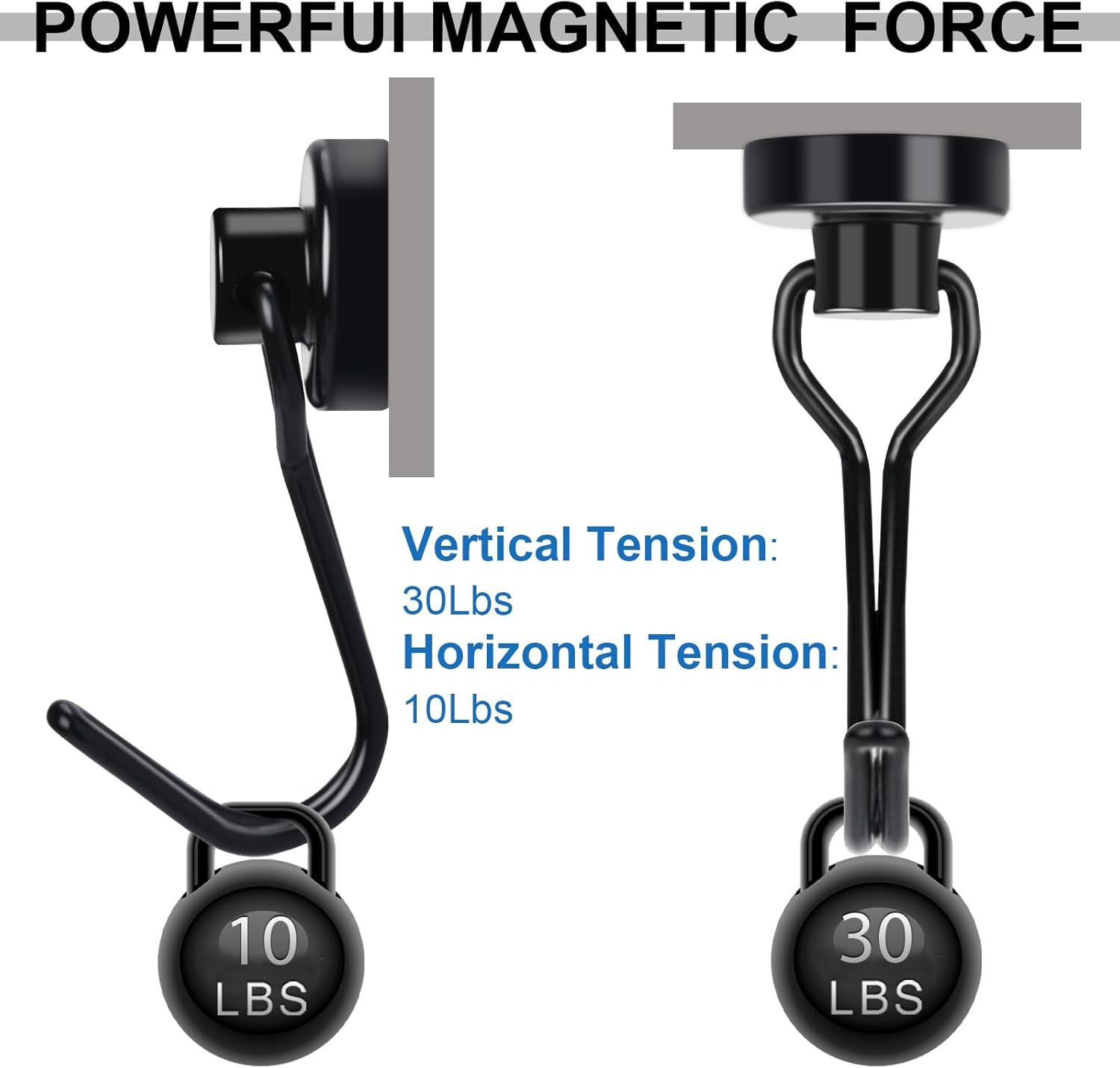 - 【Warming Tips】:The maximum bearing capacity of the black magnet hook is about 30LBS in the vertical direction and 10LBS in the horizontal direction. The bearing capacity of the black magnet hook is affected by the smooth and flat contact surface.