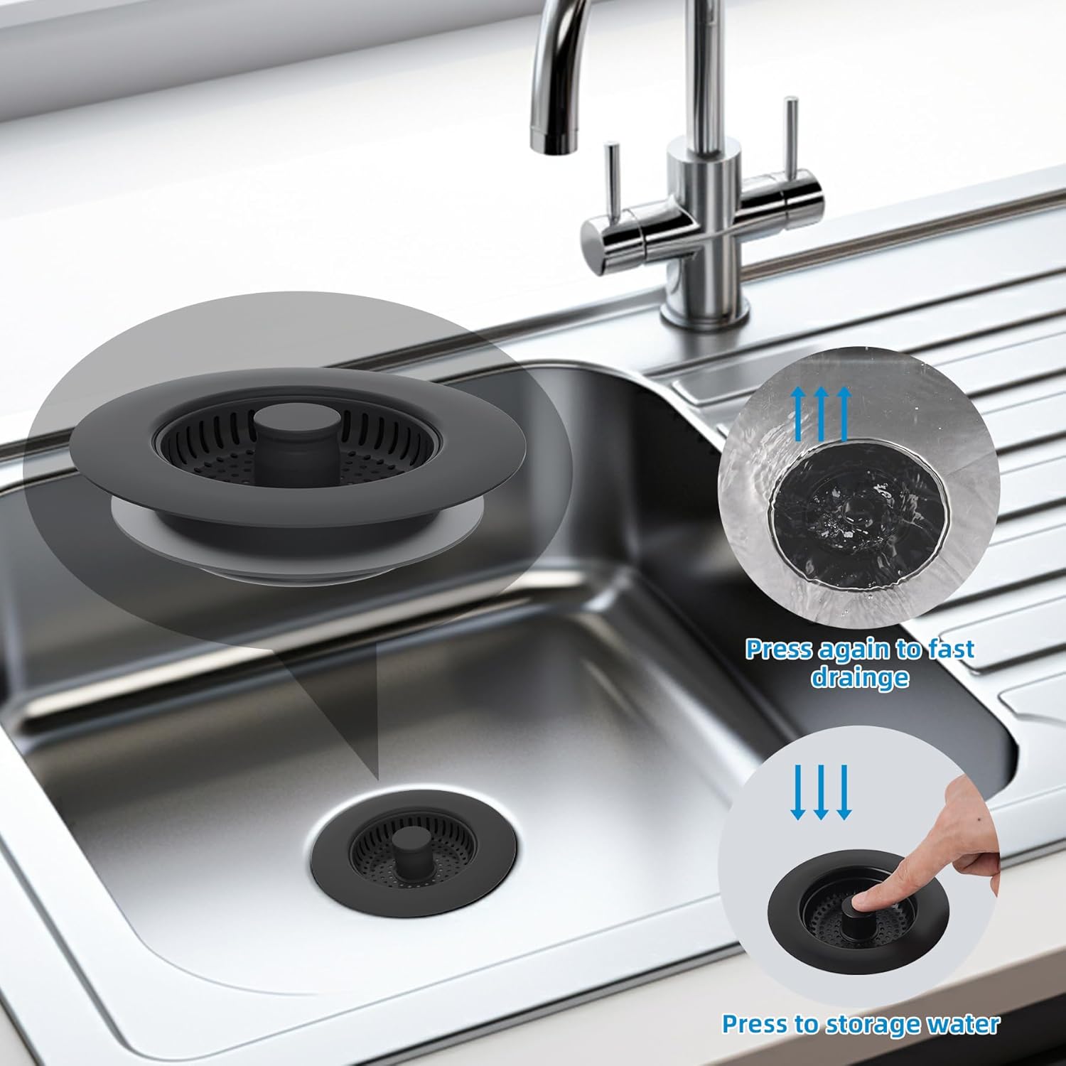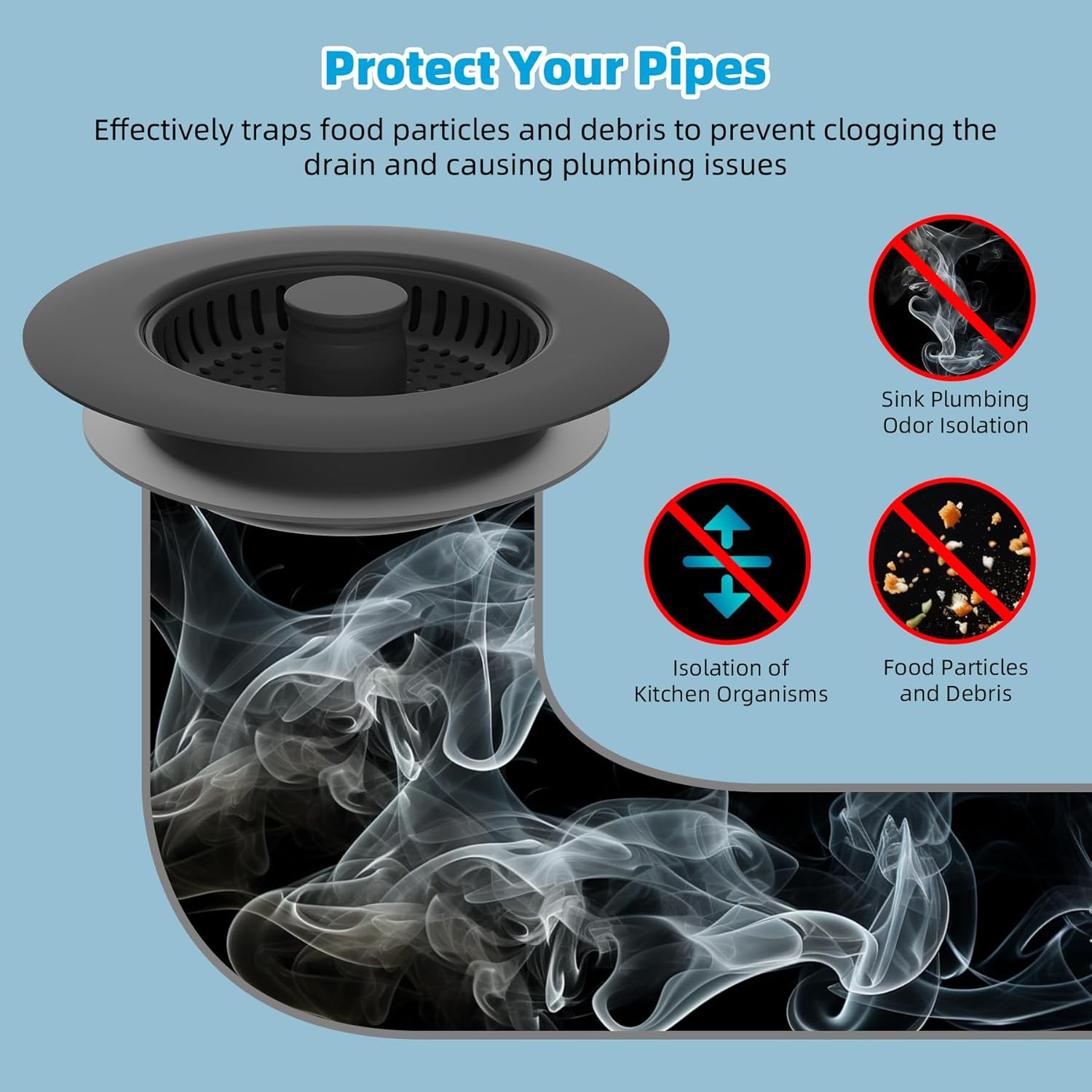 - 【Invovative 3-in-1 Functionality】The sink strainer is a versatile 3-in-1 tool that doubles as a water reservoir, a strainer, and an smell barrier. With its multi-layer sealing gaskets, it not only prevents leaks but also encapsulates smell from the kitchen drain. Whether you're washing dishes, filling the sink, or keeping food debris from clogging the drain, this innovative accessory offers comprehensive functionality for all your kitchen needs