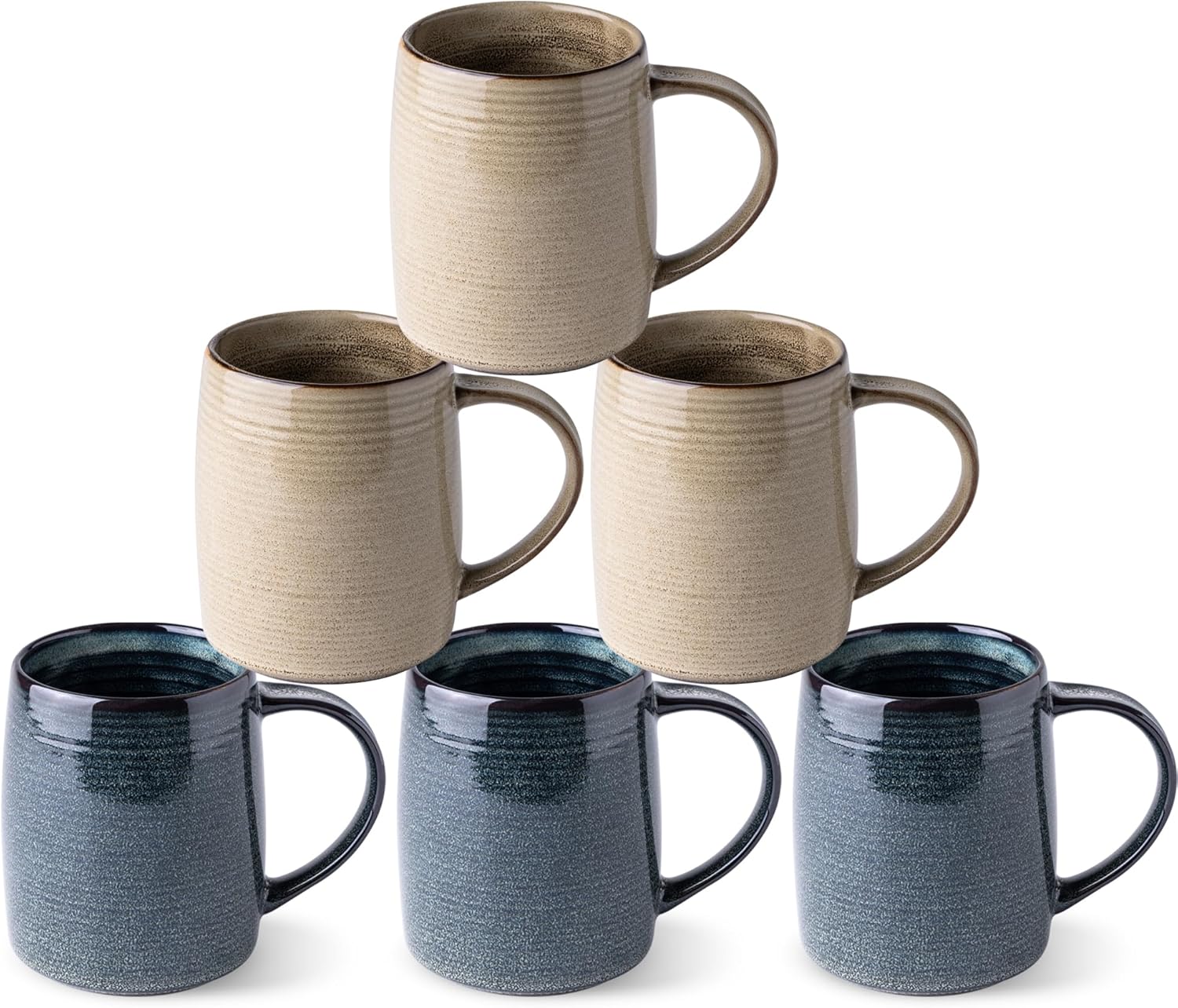 - LARGE HANDLE WITH BEAUTIFUL REACTIVE GLAZE : These coffee mugs features a large open handle that provides a comfortable and secure grip. The handle remains cool even after microwaving, and the beverages stay warm, feature a unique reactive glaze finish, each piece with handcrafted decorative is beautifully individual, adding a touch of sophistication to your table setting