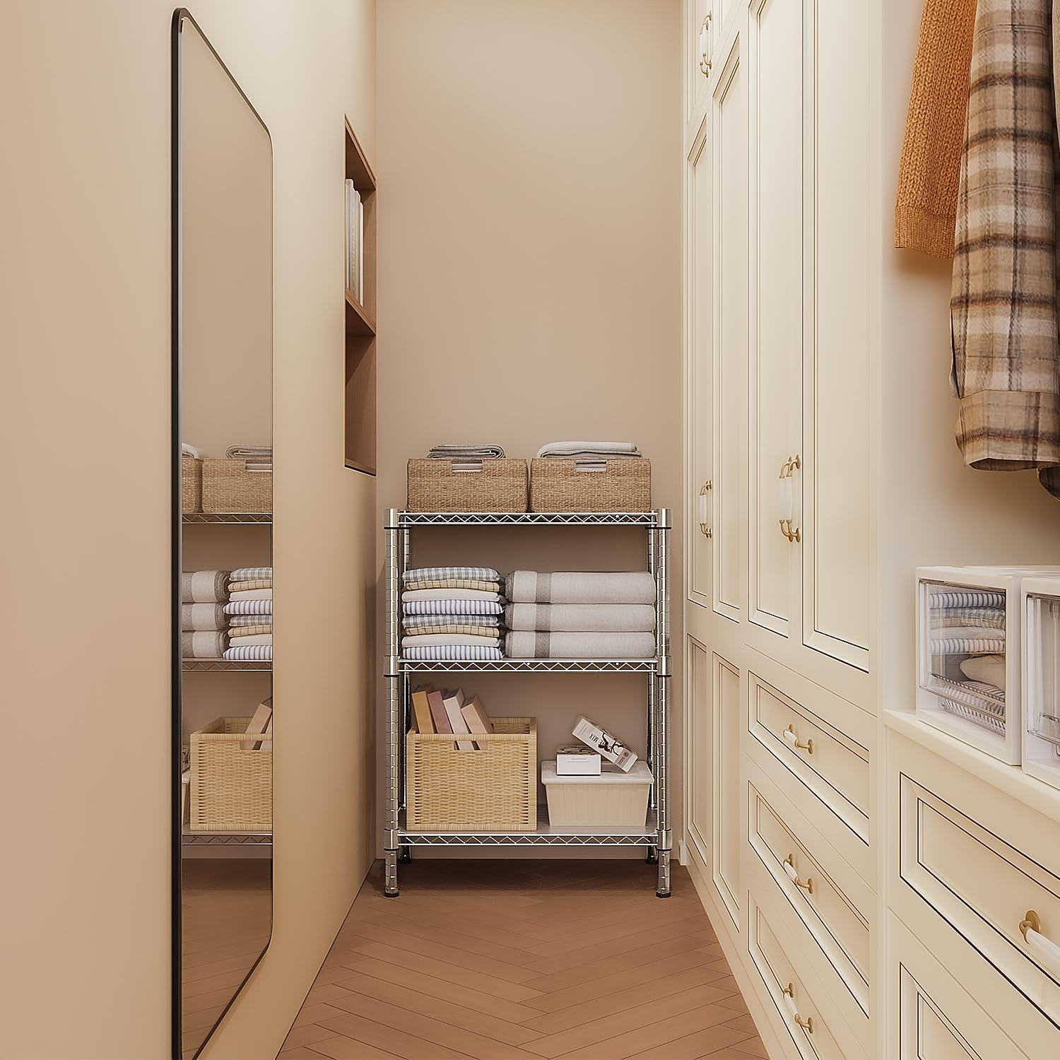 750 lbs 3 Tier Storage Rack Metal Wire Shelving Unit, Storage Standing Shelf Organizer for Laundry Bathroom Kitchen Pantry Closet Garage Basement Utility Room, Chrome 13.8" D x 29.5" W x 35.5" H