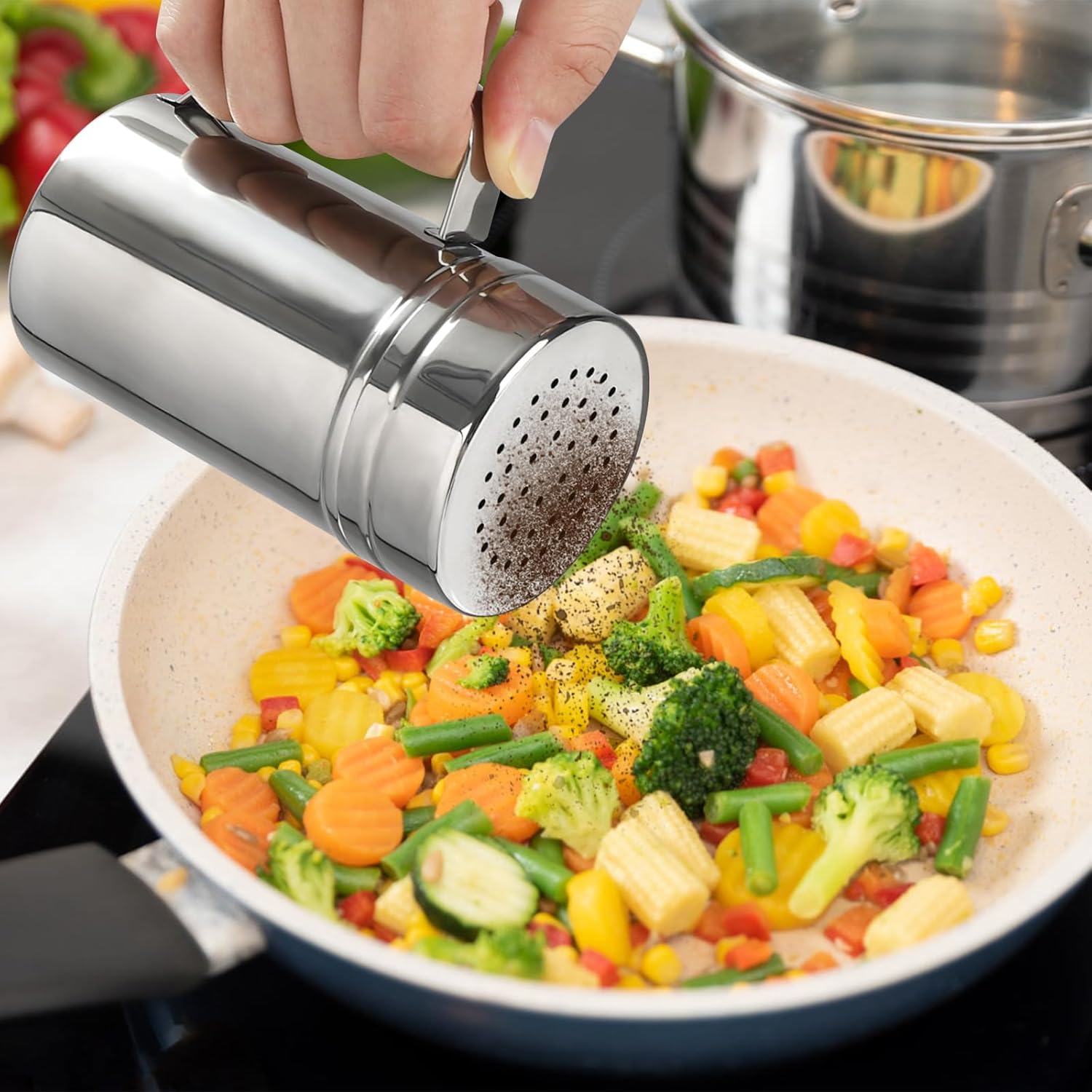 Accmor 2pcs Stainless Steel Dredge, Salt Pepper Dredge Shakers with Handle, Seasonings Spice Shakers with Lid, 14 Ounce