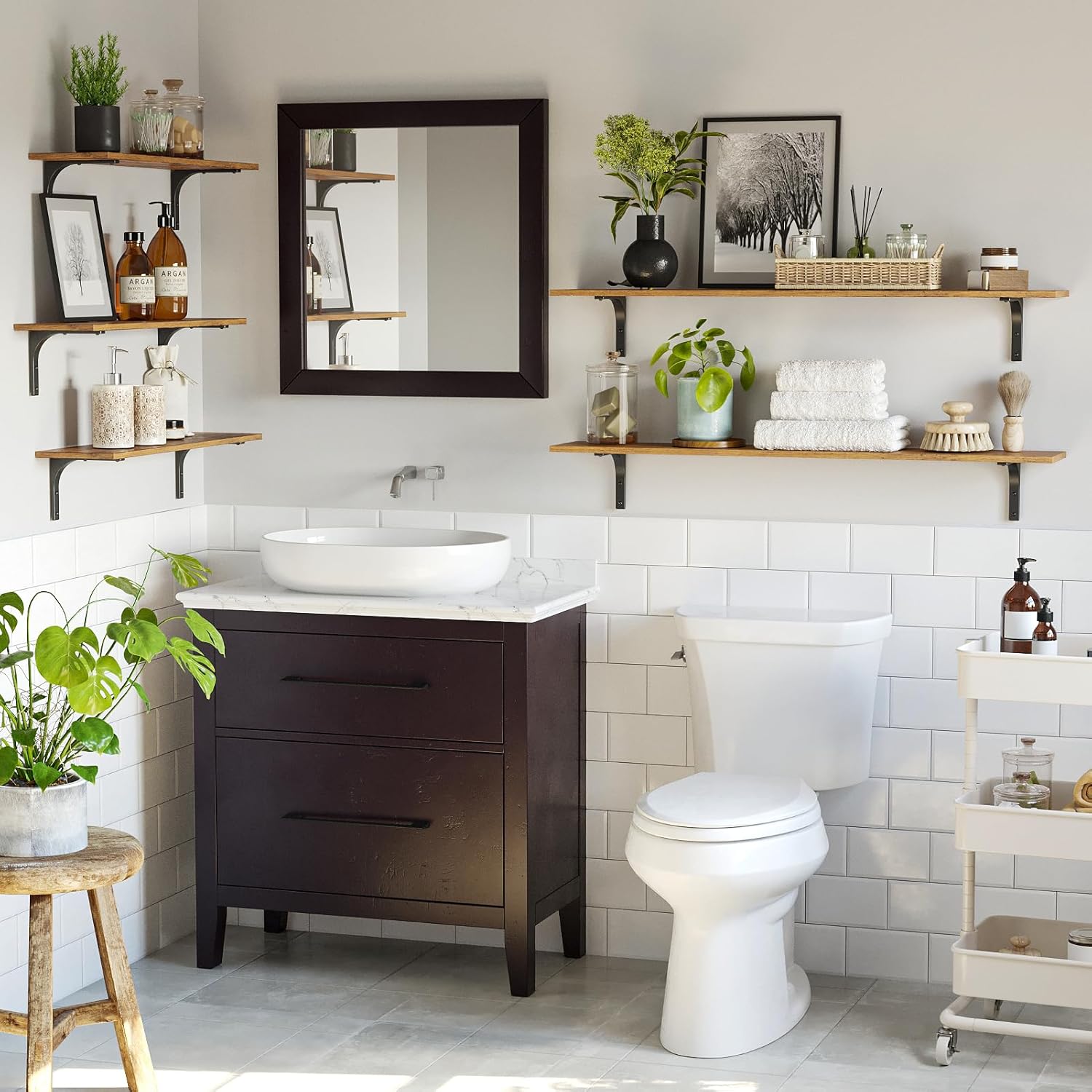 - 【Wide Application】Extra long shelves for wall storage is gospel of small family to enjoy the tranquility of home. Large floating shelves allow you to store books, games, decorations, plants, towels, photos, collectibles etc. Even to be an ideal play area for your cats. Create additional storage in living room, bathroom, bedroom, closet, balcony, study, kitchen, laundry, bar area, pantry and office