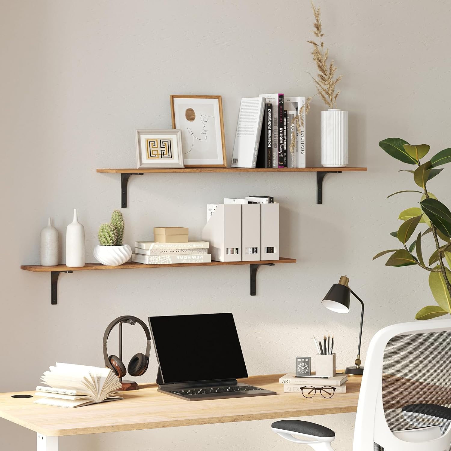 DINZI LVJ Long Wall Shelves, 55.1Inch Wall Mounted Shelves Set of 2, Extra Large Floating Storage Ledges with Sturdy Metal Brackets for Living Room, Bathroom, Bedroom, Kitchen, Rustic Brown