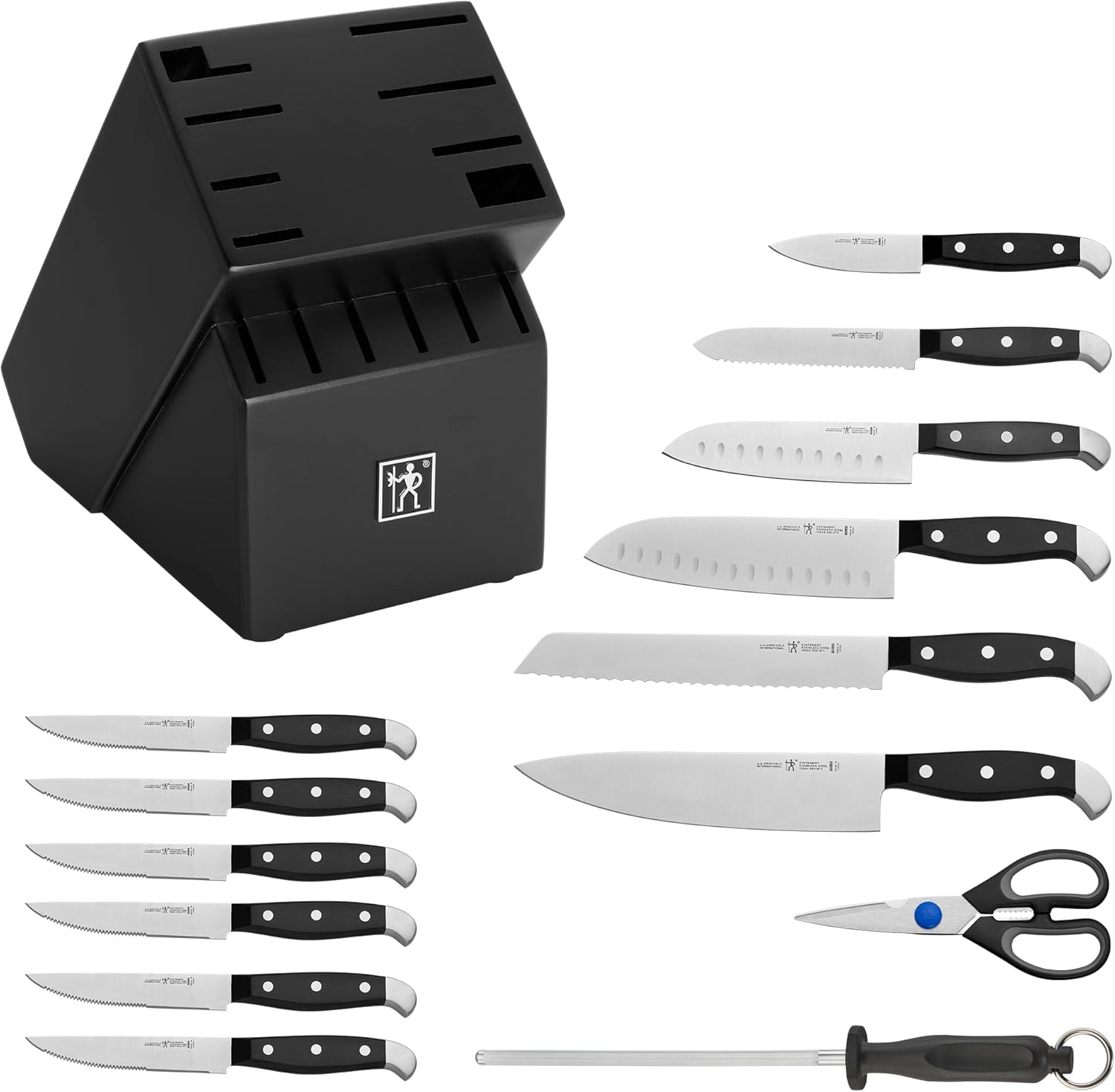 Henckels Statement 15-pc Kitchen Knife Set with Block, Chef Knife, Steak Knife set, Kitchen Knife Sharpener, Black, Stainless Steel
