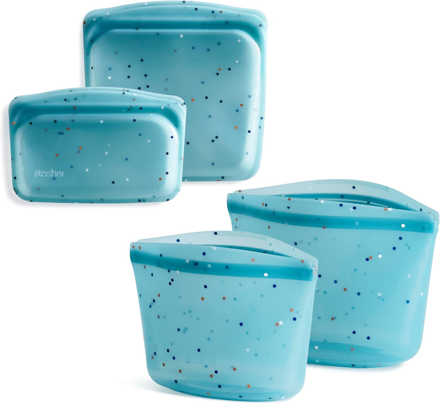 Stasher Premium Silicone Reusable Food Storage Bags, 4-Pack, Sea Spray, Multi-Use Food Storage Bags, Lunch Bag, Travel Containers, BPA Free, Leak-free, Dishwasher-Safe, Eco-friendly