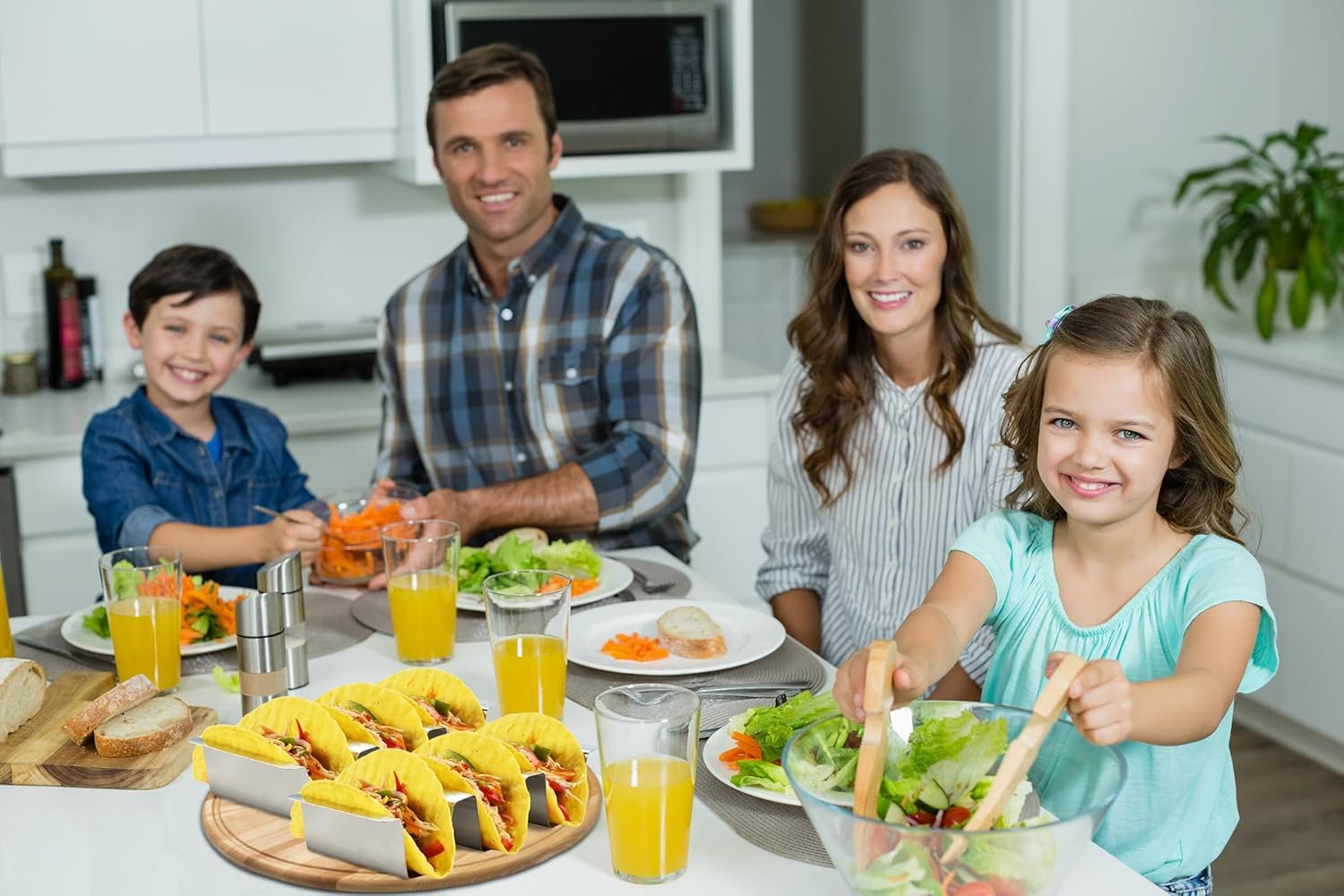 - š„³ Taco Fiesta Must-Have: Impress your guests with our set of 4 taco holders and complete taco bar serving set.