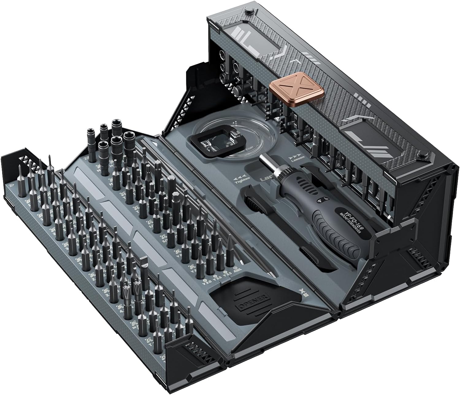 - 【 Durable Screwdriver Repair Kit 】This screwdriver bit set features replaceable chrome vanadium tool steel bits (HRC52) with a phosphated surface for durability, precision, and non-destructive repair of electronic devices. The tips storage box, made of high-strength ABS plastic, is drop-resistant. It includes 2 square magnets on each corner for secure closure. Or use the golden latch to attach the sticky notes or fridge magnet to the 4 round magnets on the outer surface as a reminder or decoration.