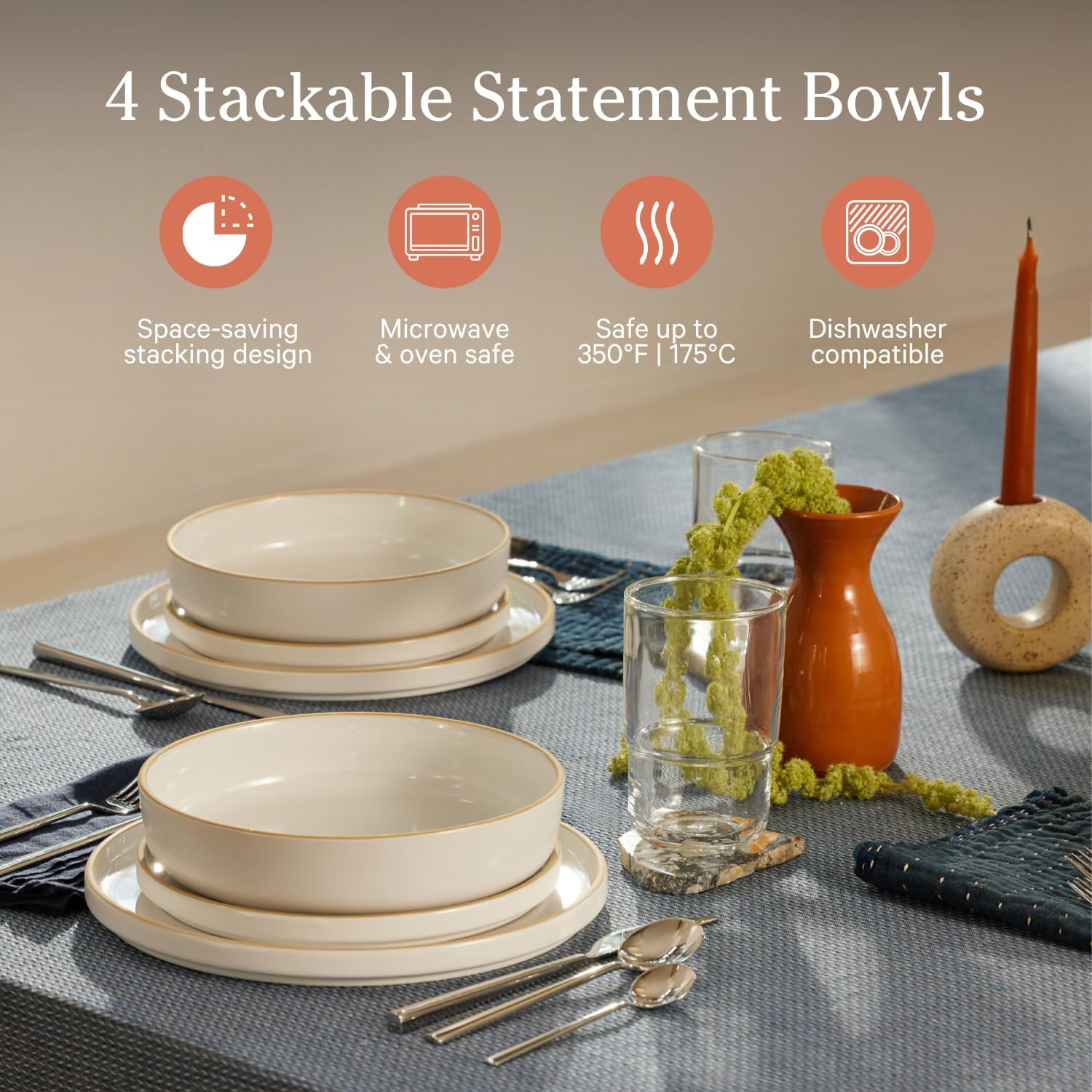 Our Place Dinner Bowls - Set of Four 8.5" Handcrafted Ceramic Pasta Bowls | Deep Plate Bowl Hybrid for Salads, Rice & More | Chip-Resistant, Restaurant-Grade, Stackable, Modular Design | Steam