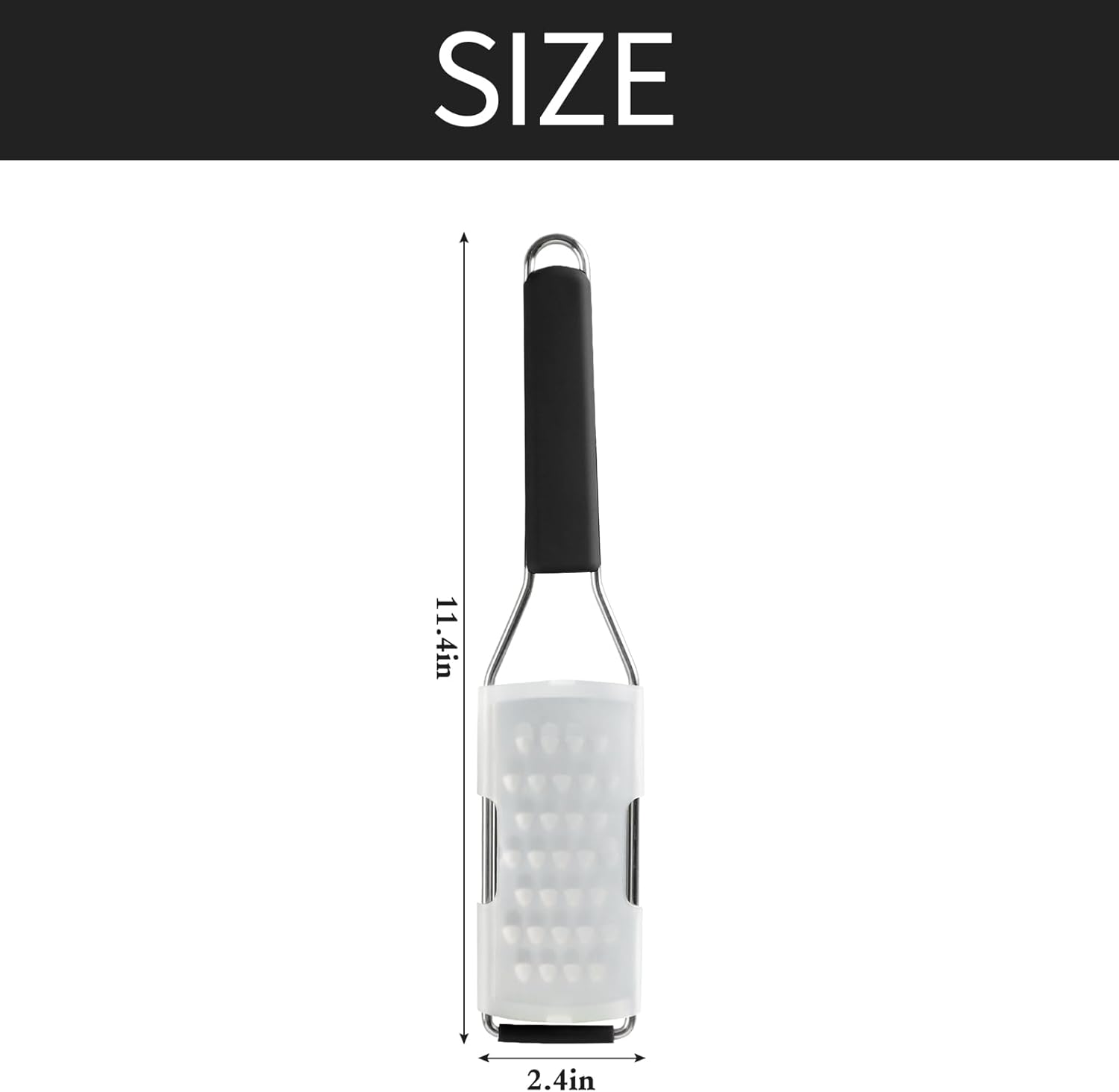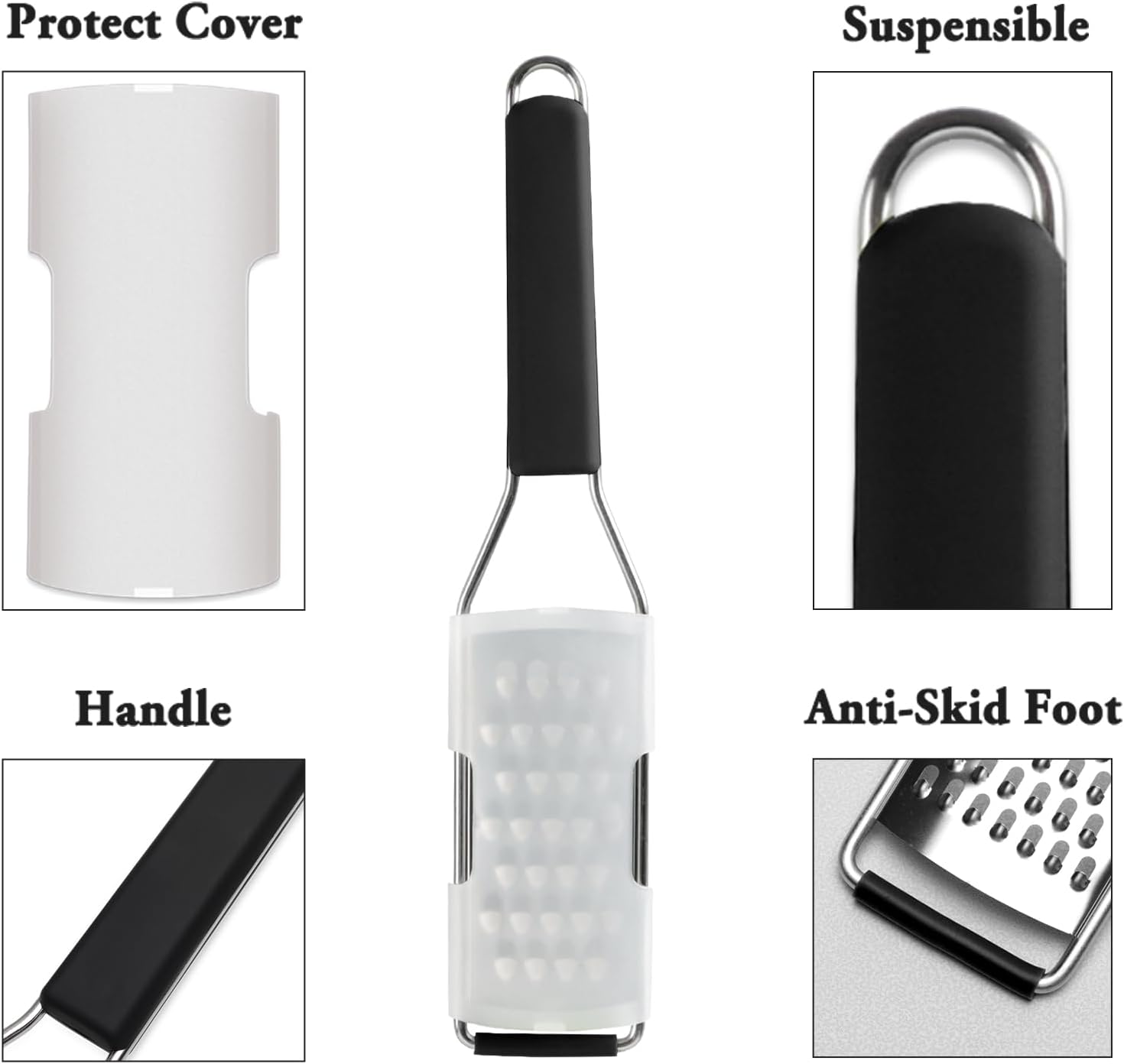 - Superior Process: The food grater is made of 304 stainless steel, and the blade is is very sharp, uniform, sharp, and does not clog easily. The comfortable TPR handle is a good size and feels good to hold. At the bottom of the planer, there are anti-skid bars, which make the operation more stable. Rust resistant.