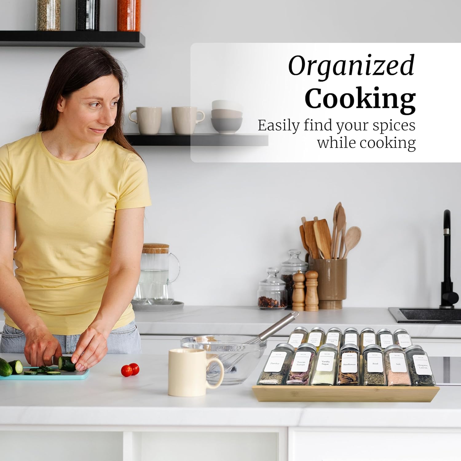 - [Durability Tested] Perfectly polished premium bamboo drawer organizer kitchen with smooth edges. Made-to-last durable spice jars with label and organizer rack and not as brittle as glass or acrylic.