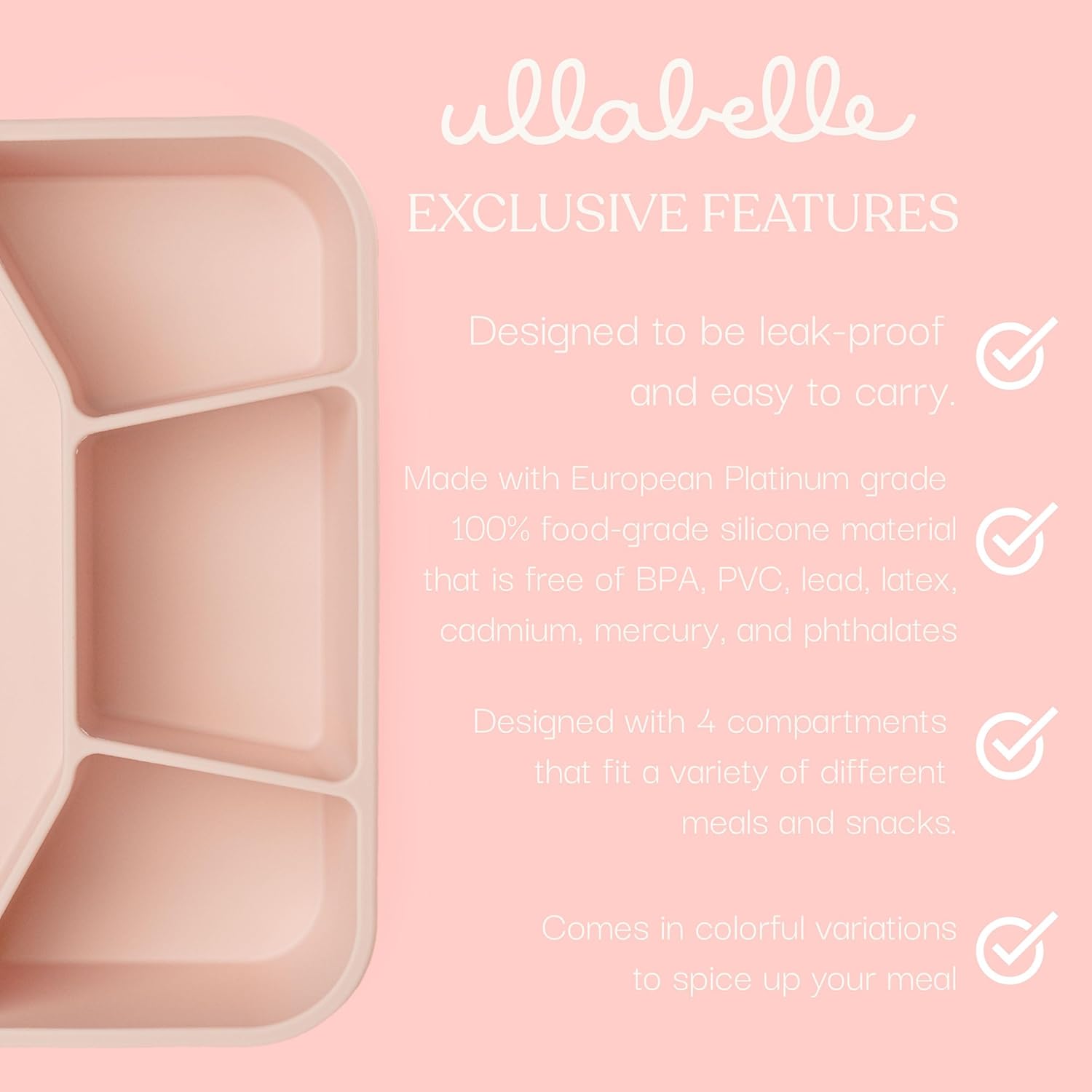 Ullabelle Leak Proof Bento Box Food-Grade Silicone Bento, BPA, Phthalate, Lead, & PVC Free - Bento Lunch Box for Daycare, Kids, & Adults - Leak Resistant Sets With Lids Snack Box Container (Grey 4)