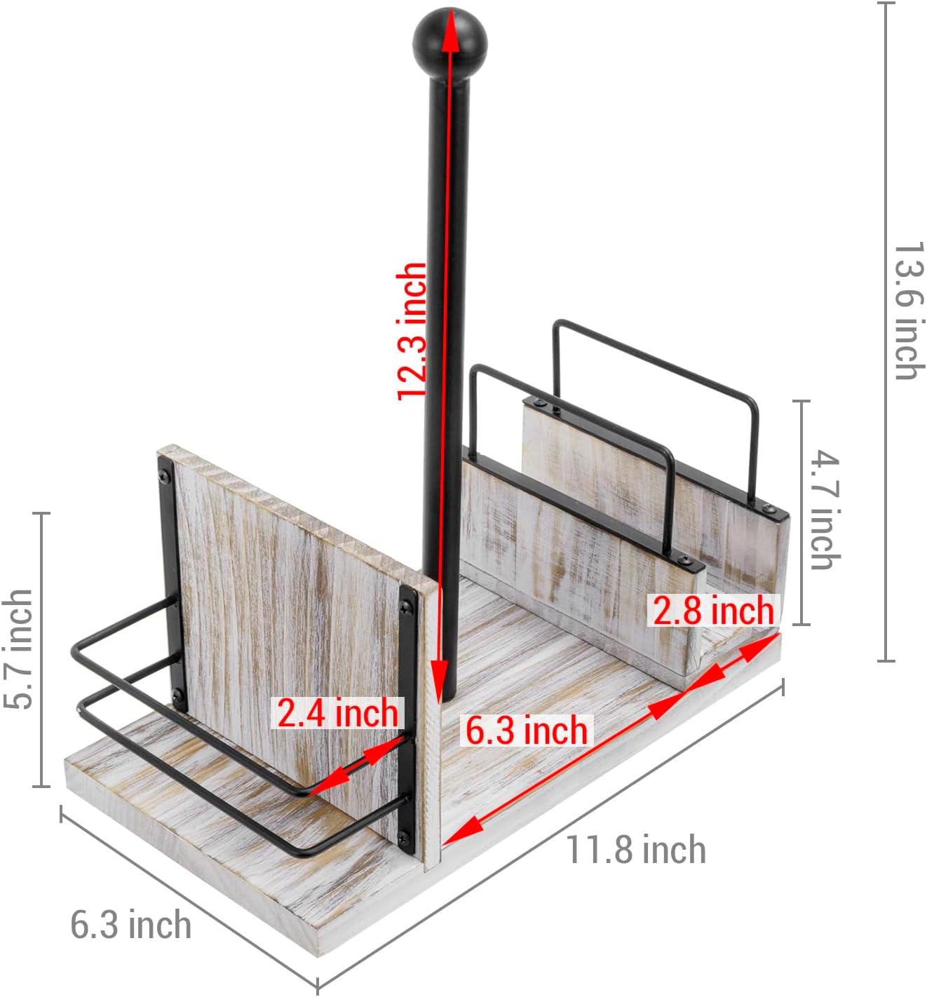 - Approximate Dimensions: Overall - 11.8 L x 6.3 W x 13.4 H; Spice Rack - 5.7 L x 2.2 W x 5.1 H; Spindle - 12.6 H; Napkin Holder - 6.3 L x 2.0 W x 3.0 H (in inches)