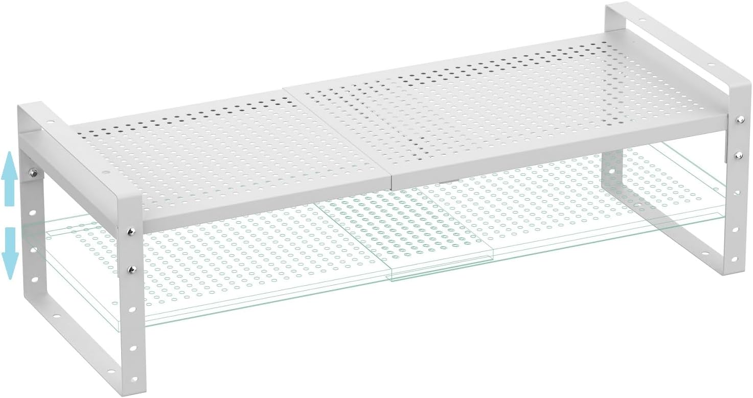 Expandable Shoe Rack Stackable Metal Pantry Storage Shelves Stand Adjustable Height Cabinet Shelf Organizer Racks Spice Shelving(1PACKS/WHITE,LARGE)