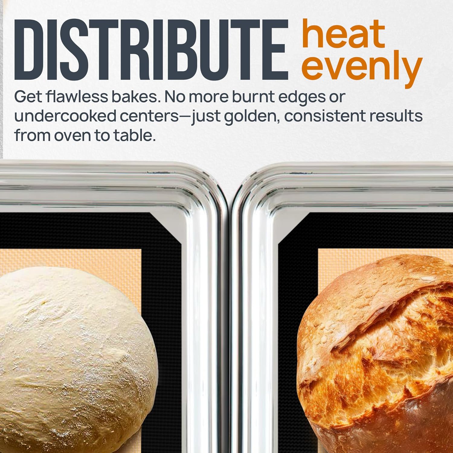 - NON-STICK SURFACE: The secret to perfect goods are these cookie sheets, perfect for both dry and sticky ingredients. Say goodbye to using cooking sprays, foil, or parchment paper, as these reusable baking mats allow even heat distribution that results in even cooking and no burned areas. Protect your pans from any mess with our silicone baking set.