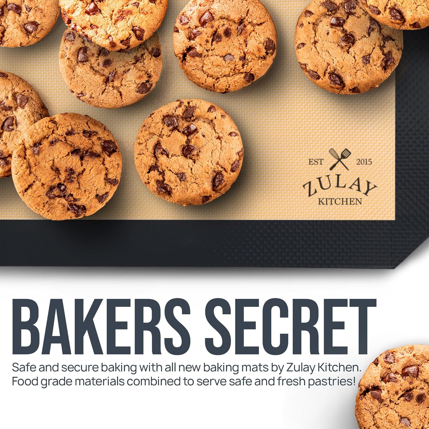 Zulay Kitchen Silicone Baking Mat 2-Pack (16.5"x11.6") – Reusable Nonstick Silicone Baking Sheets for Oven, Pastry, Cookies & More – Easy to Clean, Heat Resistant (Black)