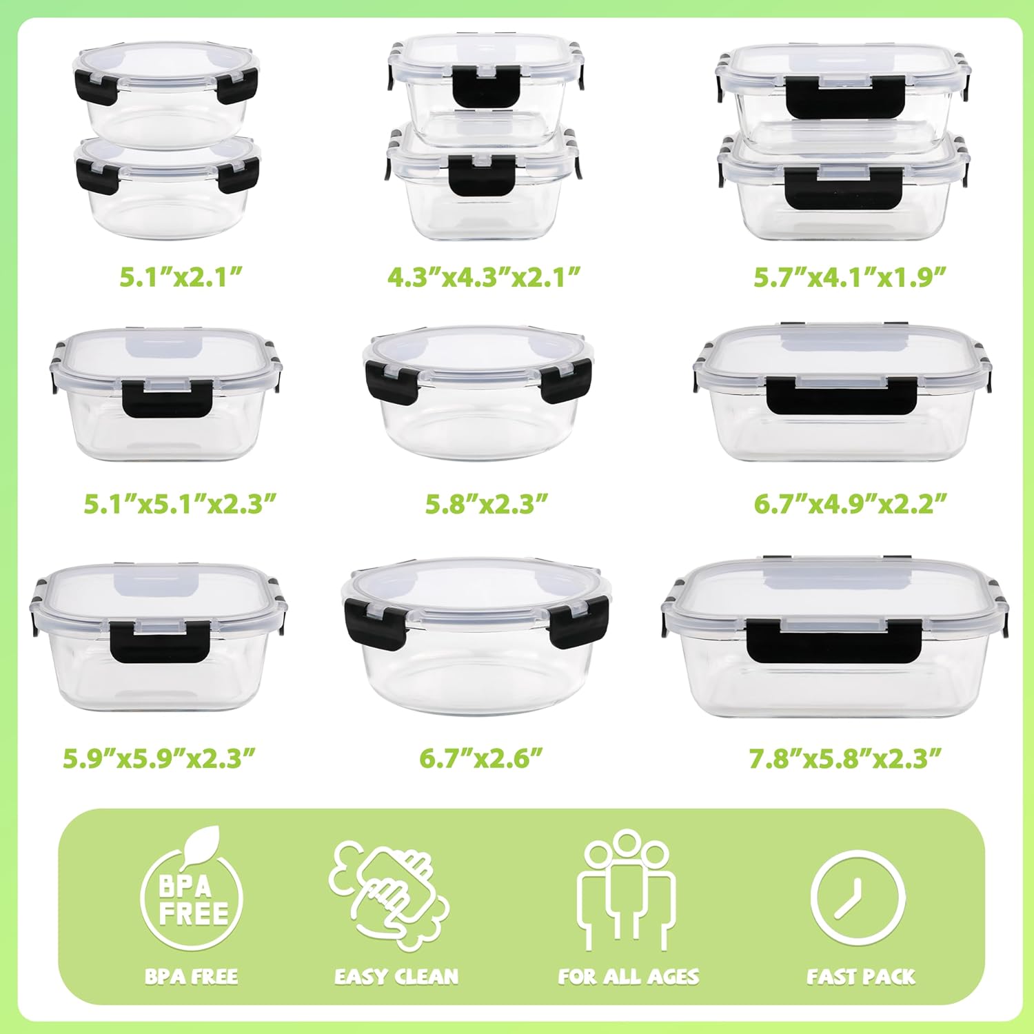 kakw12 Packs Glass Food Storage Containers,Glass Meal Prep Container for Lunch,can be used in the Microwave, Oven, Freezer and Dishwasher,with Upgraded Snap Locking Lids. (12 Packs)