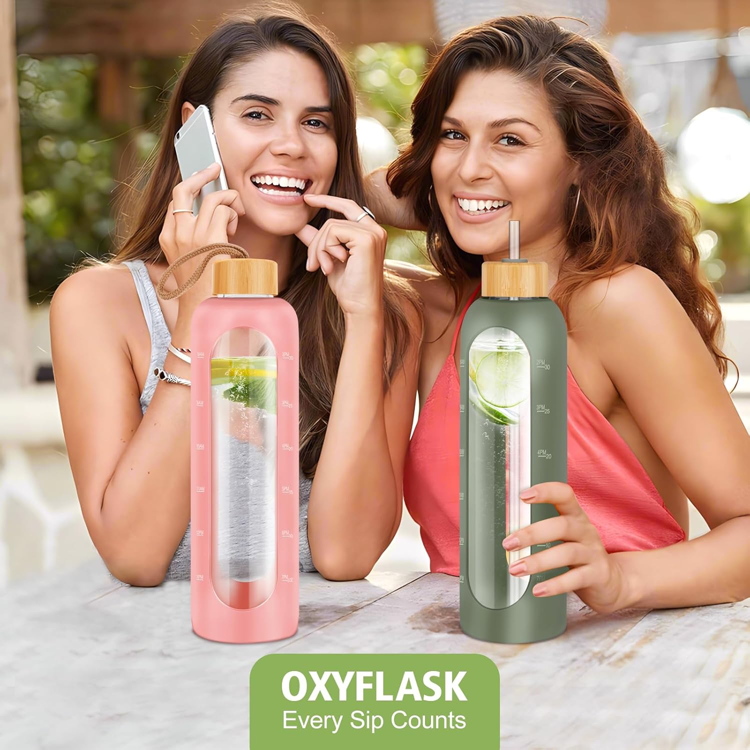 - TRACK DAILY HYDRATION GOALS: Stay on top of your water intake with this glass water bottle with time marker, featuring clear volume indicators. Whether you're at work or exercising, itβs a simple, effective tool to meet your health and hydration goals.