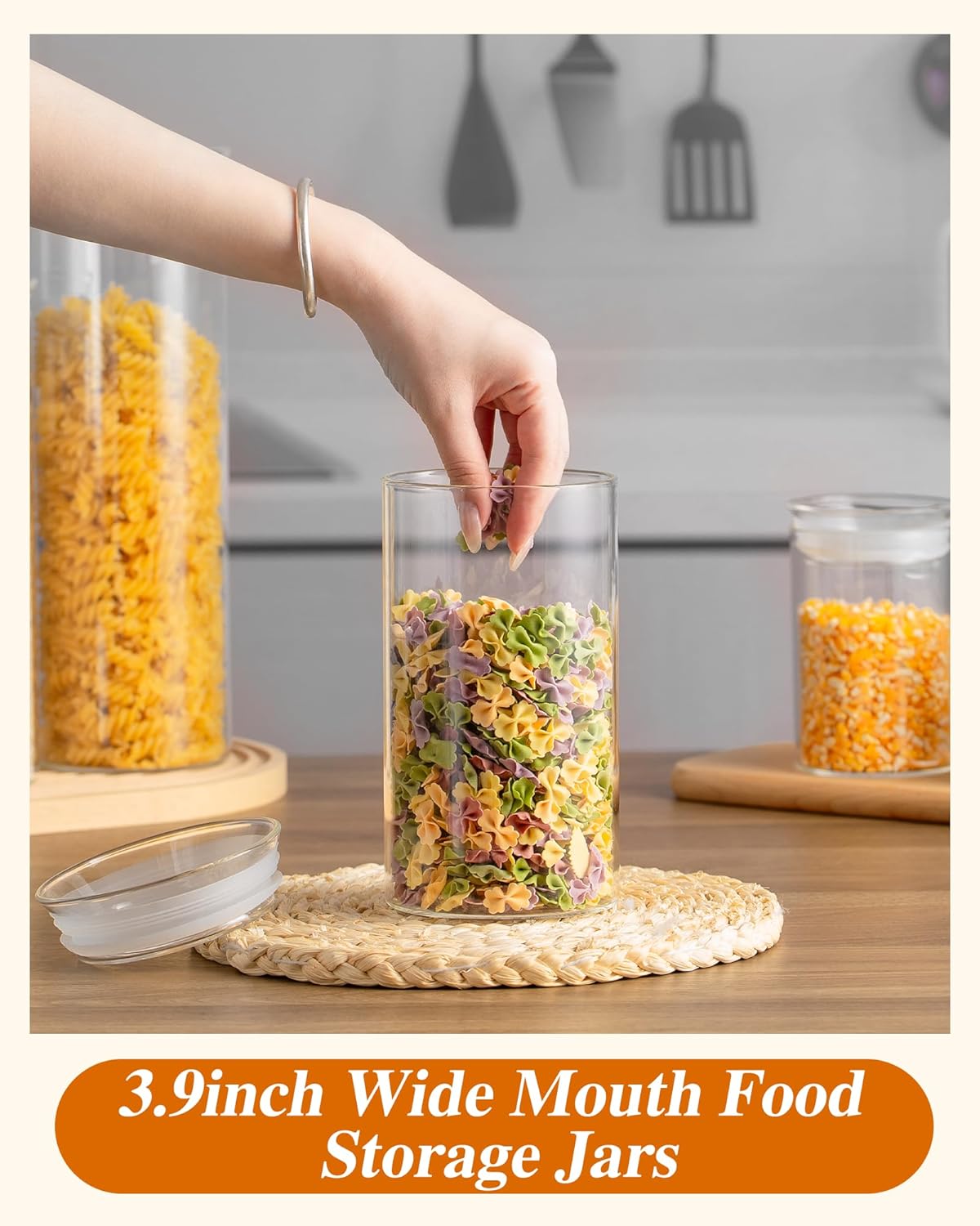 - MULTIPLE CAPACITY OPTIONS: ZENS glass kitchen canisters are are available in 7 deferent diameter sizes, great for you to mix and matching nicer looking of your kitchen counter. The small jars are great for spices or loose tea. while the wide mouth jars are great for cereal, pasta and flour and all other dry foods. It's dishwasher and microwave safe.