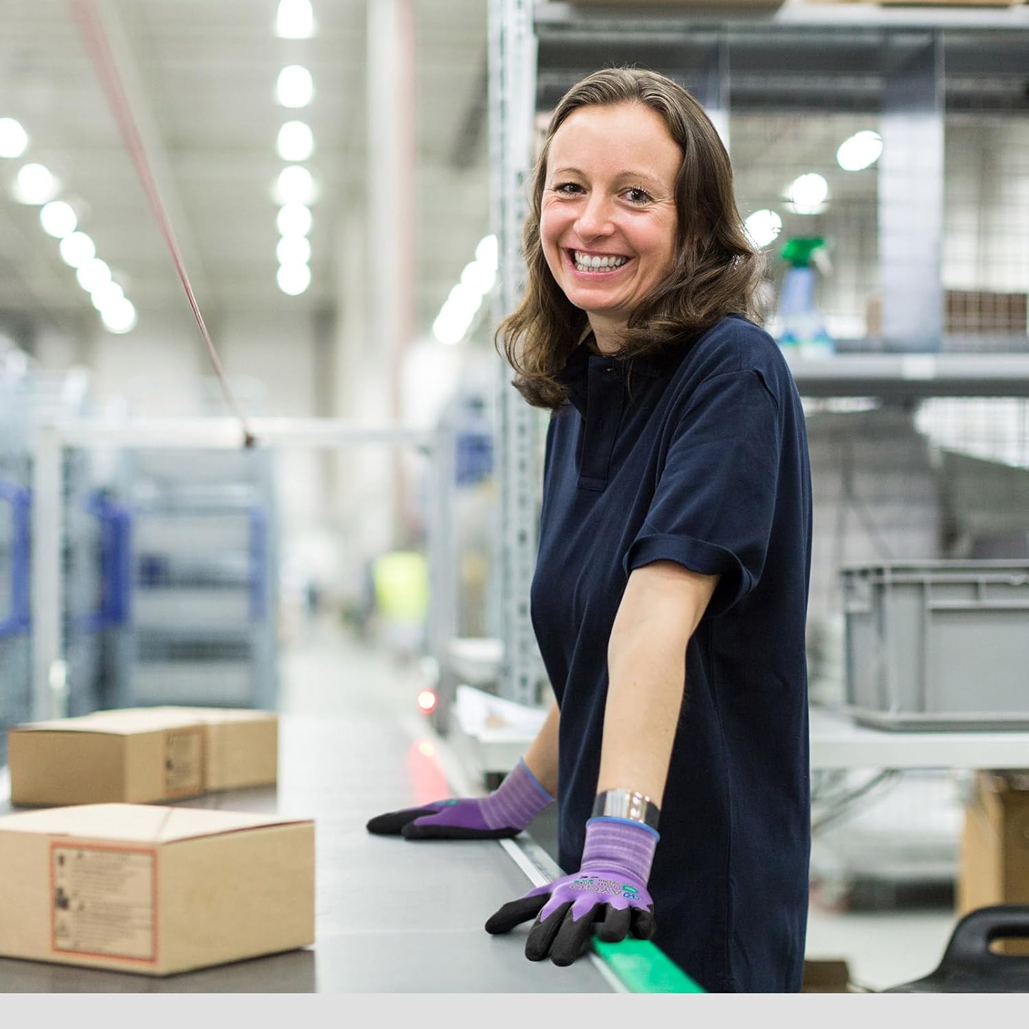 KAYGO Safety Work Gloves MicroFoam Nitrile Coated, 12 Pairs KG18NB,Seamless Knit Nylon Glove for Men and Women, Ideal for Automotive,Warehouse,Construction (L, Purple)