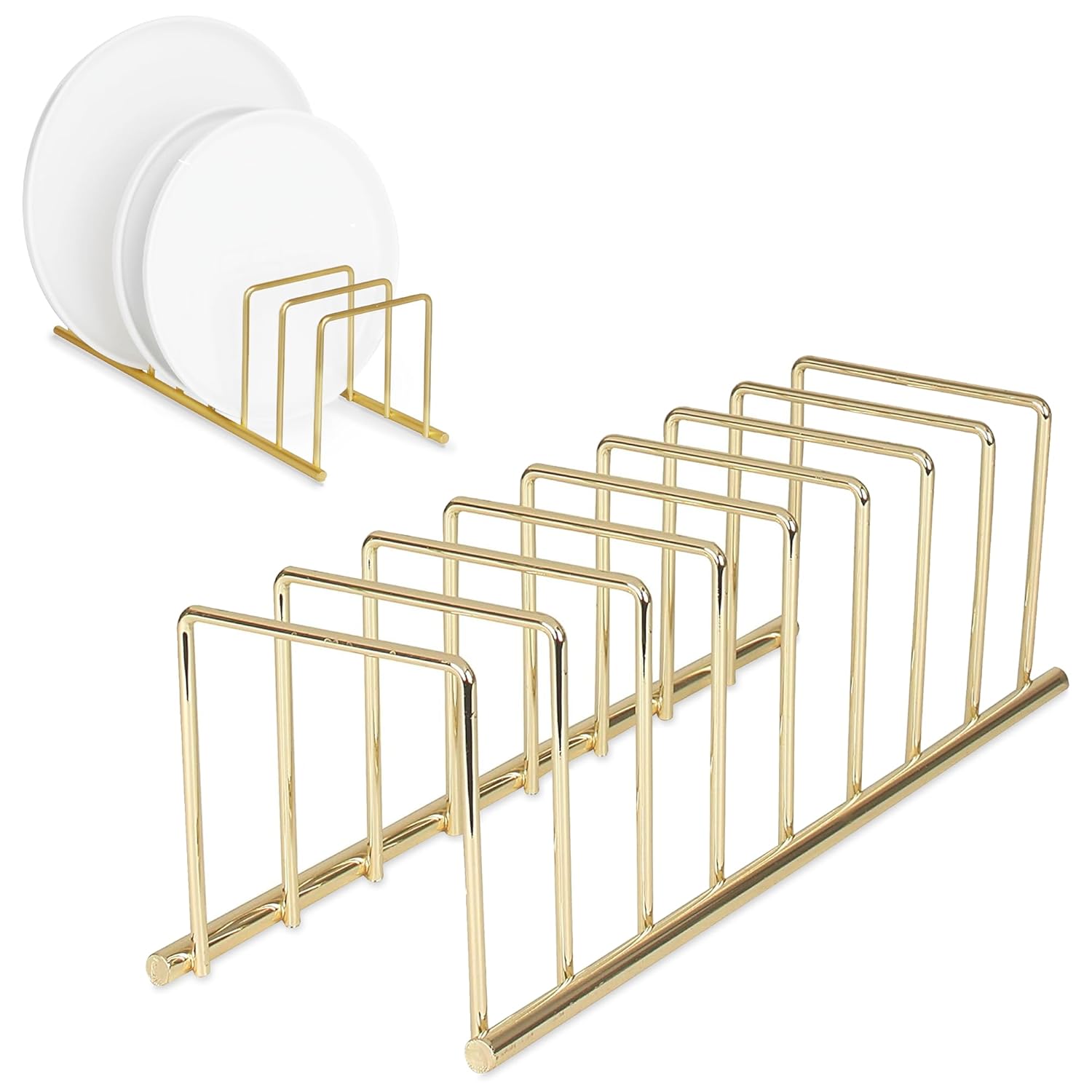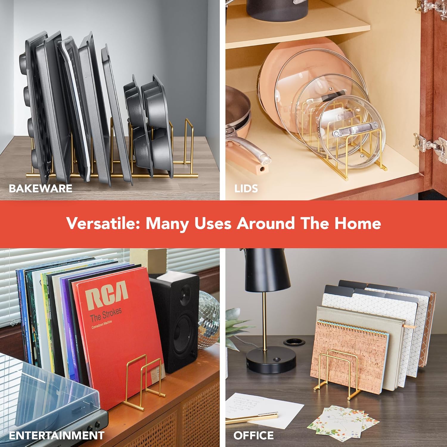 - SOLID STEEL CONSTRUCTION: The Gold finish of this cutting board organizer delivers lasting durability that handles heavy cutting boards and ceramic plates without bending or wobbling through years of daily use