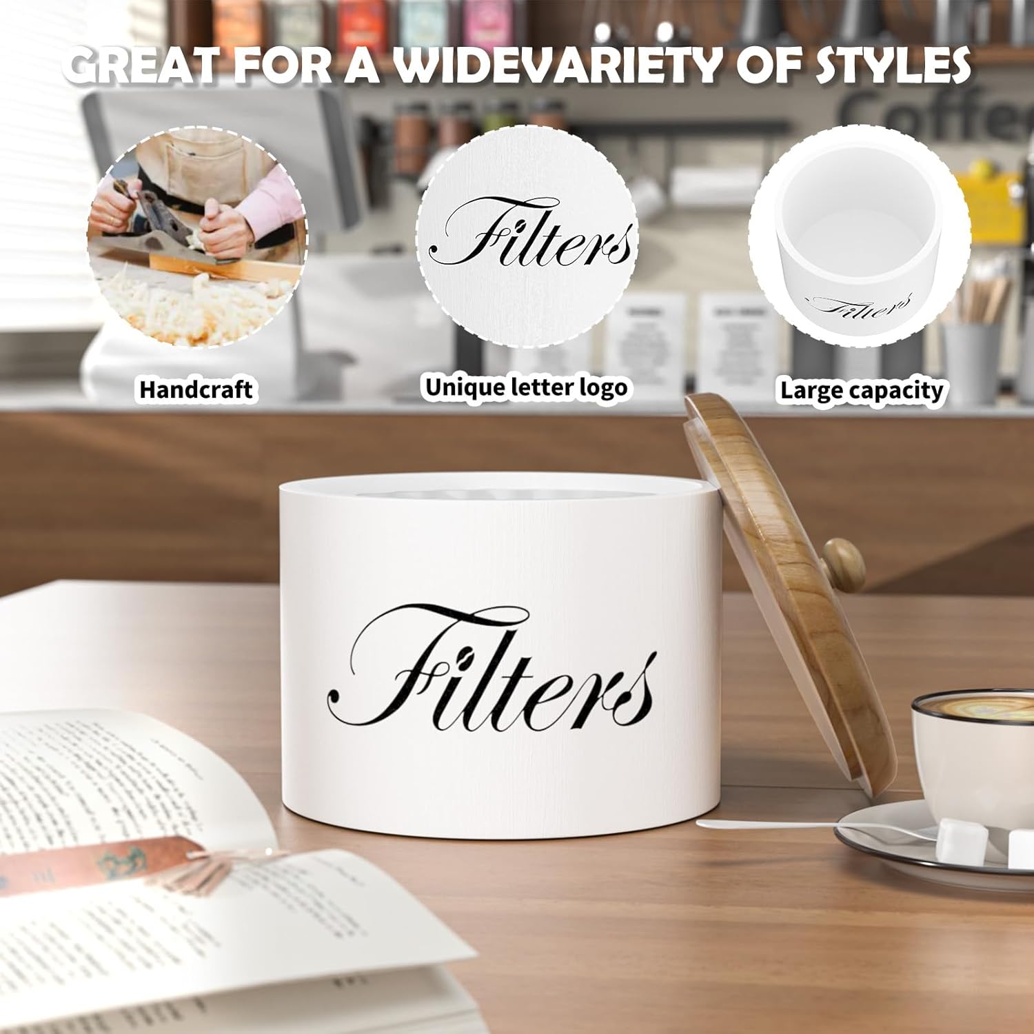 - 【Basket Coffee Filter Container】: Our coffee filter holder with lid is capable of holding various sizes of round basket-shaped pleated filters commonly found in the market, a sizeable internal capacity is enough to store your daily coffee filters, it is a perfect addition to your coffee bar decor