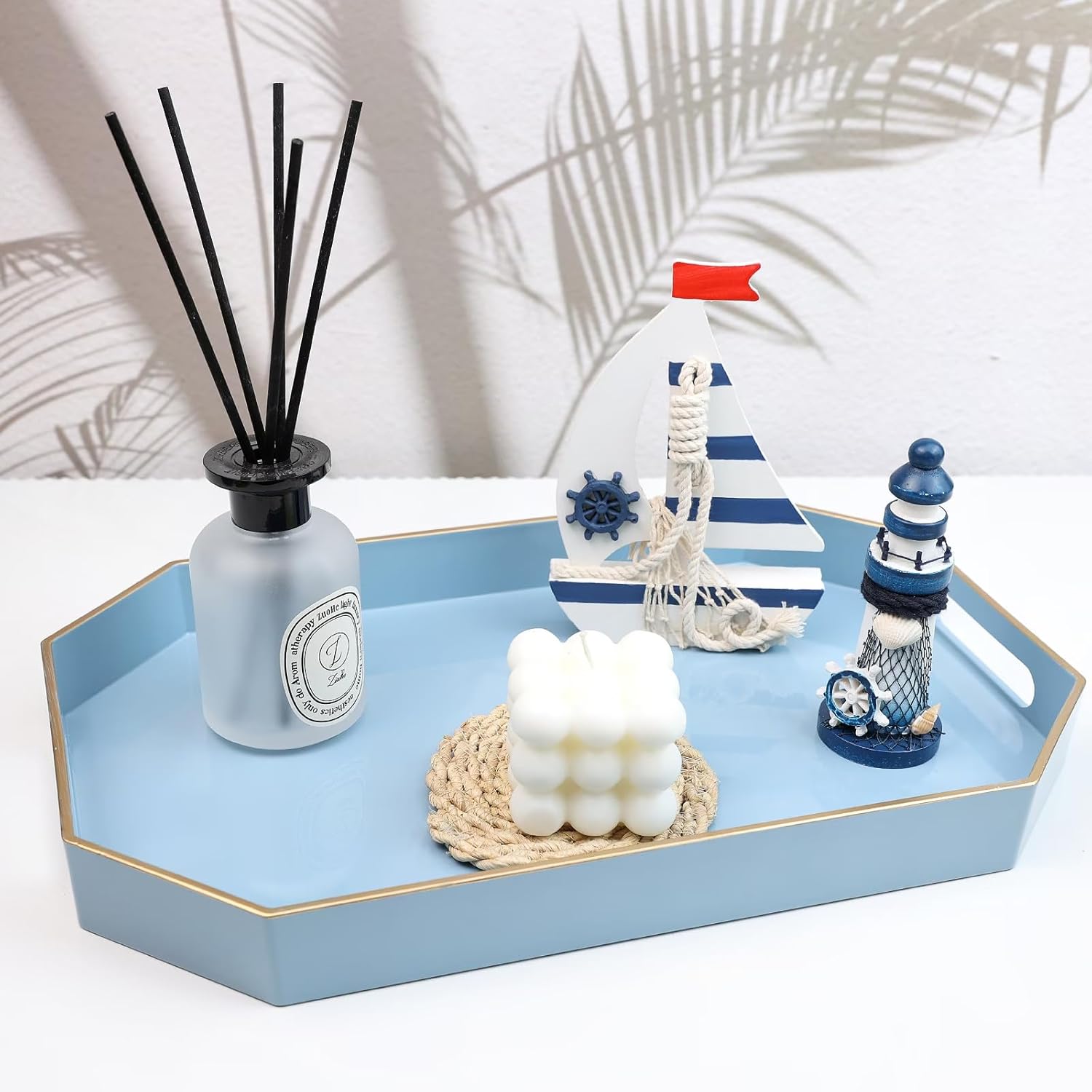 Spsyrine Blue Plastic Serving Tray for Ottoman, Coffee Table, Octagon Decorative Tray for Entertaining, Outdoor, Living Room, Home Decor